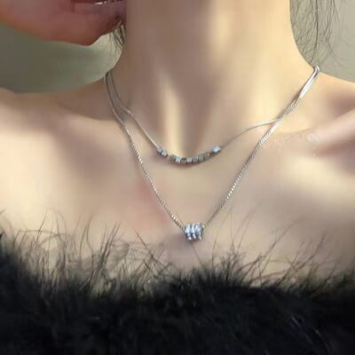 Tròn Hợp Kim Kim Cương Giả Vòng Cổ Vuông Nữ Cá Tính Đơn Giản 2 Lớp Xương Đòn Chuỗi Ánh Sáng Sang Trọng Cao Cấp Cảm Giác Hốc Áo Len Dây Chuyền
