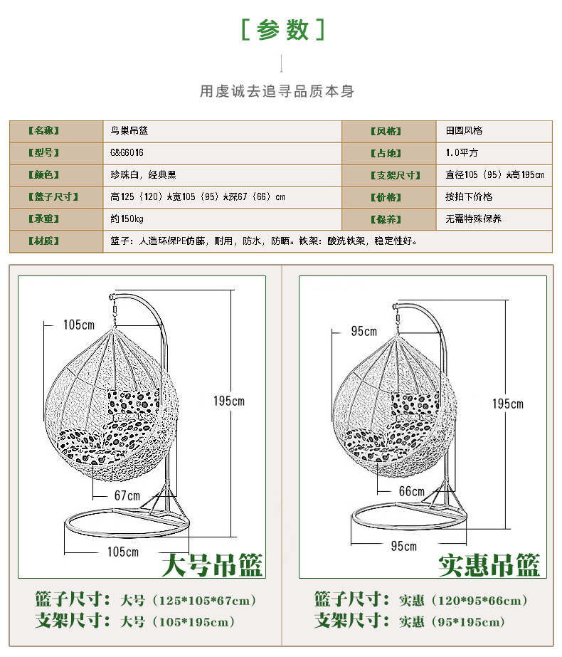 Thương hiệu: Golden Garden, Zhijing, Ririqing, Xidejing, Shuaiming Mã sản phẩm: Tư vấn dịch vụ khách hàng Màu sắc: Trắng ngọc trai/Đen cổ điển/Đen cổ điển Danh mục sản phẩm: Ghế treo Kiểu dáng: Tư vấn dịch vụ khách hàng Thông số kỹ thuật: Tư vấn dịch vụ khách hàng Cho dù tay vịn: Không Có hay không giao hàng tận nơi: giao hàng tận nơi Có cung cấp dịch vụ lắp đặt hay không: Không Có phải là người đóng thuế chung hay không: Không Chất liệu: kim loại giả mây