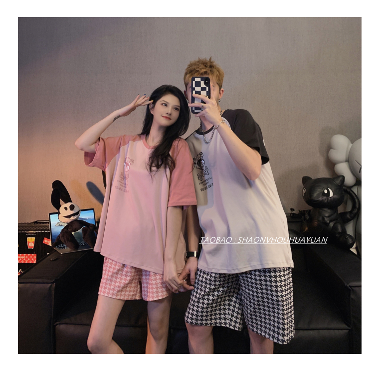 trong phim hoạt hình gấu vài bộ đồ ngủ của phụ nữ mùa hè cotton ngắn tay quần short cổ tròn áo pull nam phù hợp với đồ mặc nhà