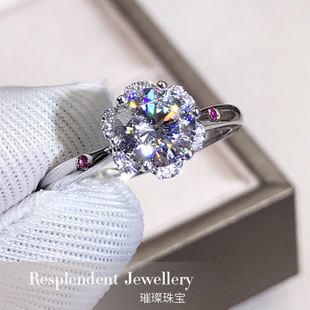 镀pt950铂金仿D级高碳莫桑钻石戒指 经典微镶八心八箭六爪戒指女