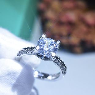 抖音快手直播热卖皇冠经典六爪开口戒指 仿美国D色莫桑钻石婚戒女