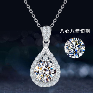 直播货源仿美国进口D色莫桑钻石吊坠 镀pt950八心八箭高碳钻项链