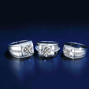 快手抖音直播霸气男士仿莫桑石戒指 镶嵌八心八箭锆石开口男戒
