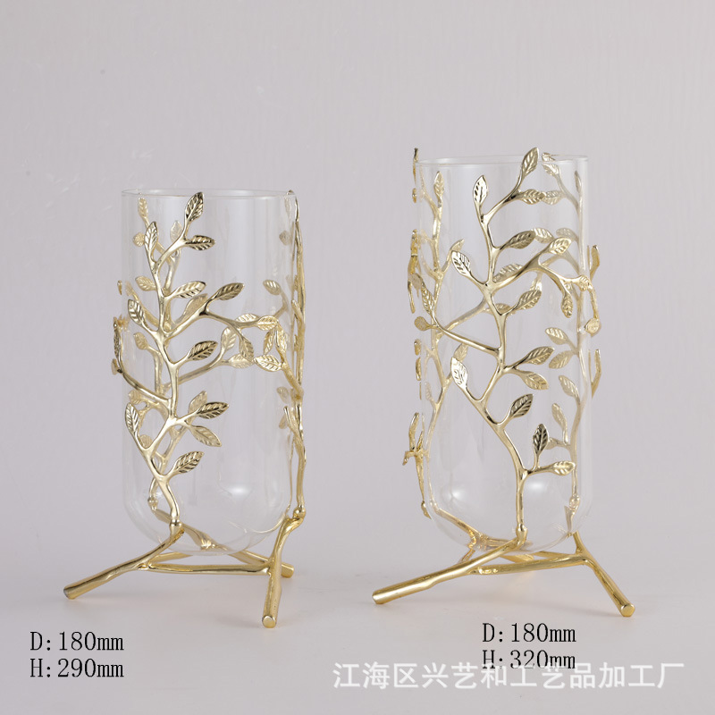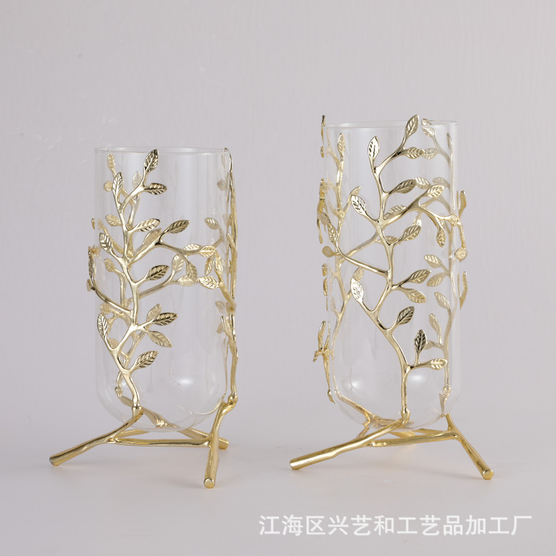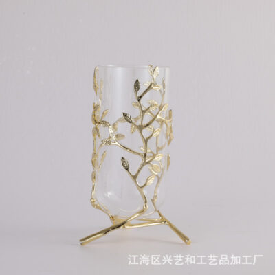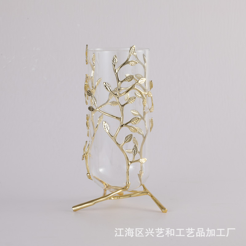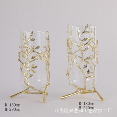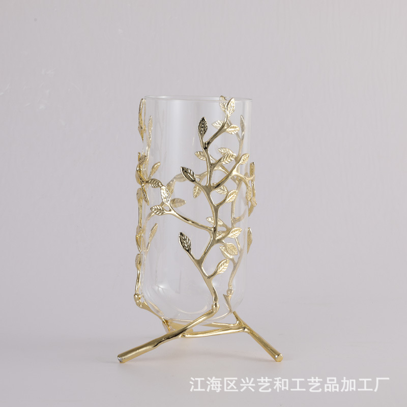 Trung Quốc Đẹp vàng đuôi gai sang trọng Thủy tinh trang trí Bình hoa Nhà Hiên nhà Bình hoa
