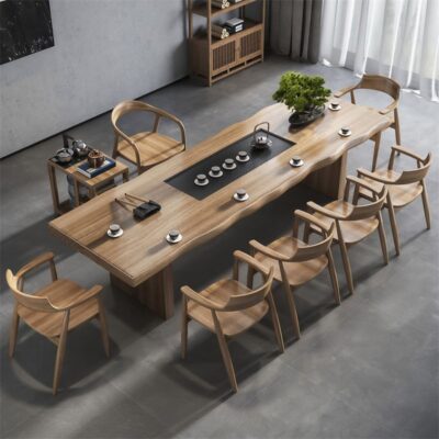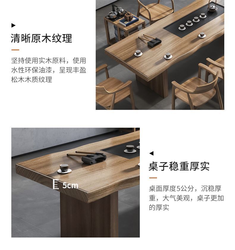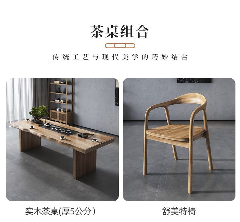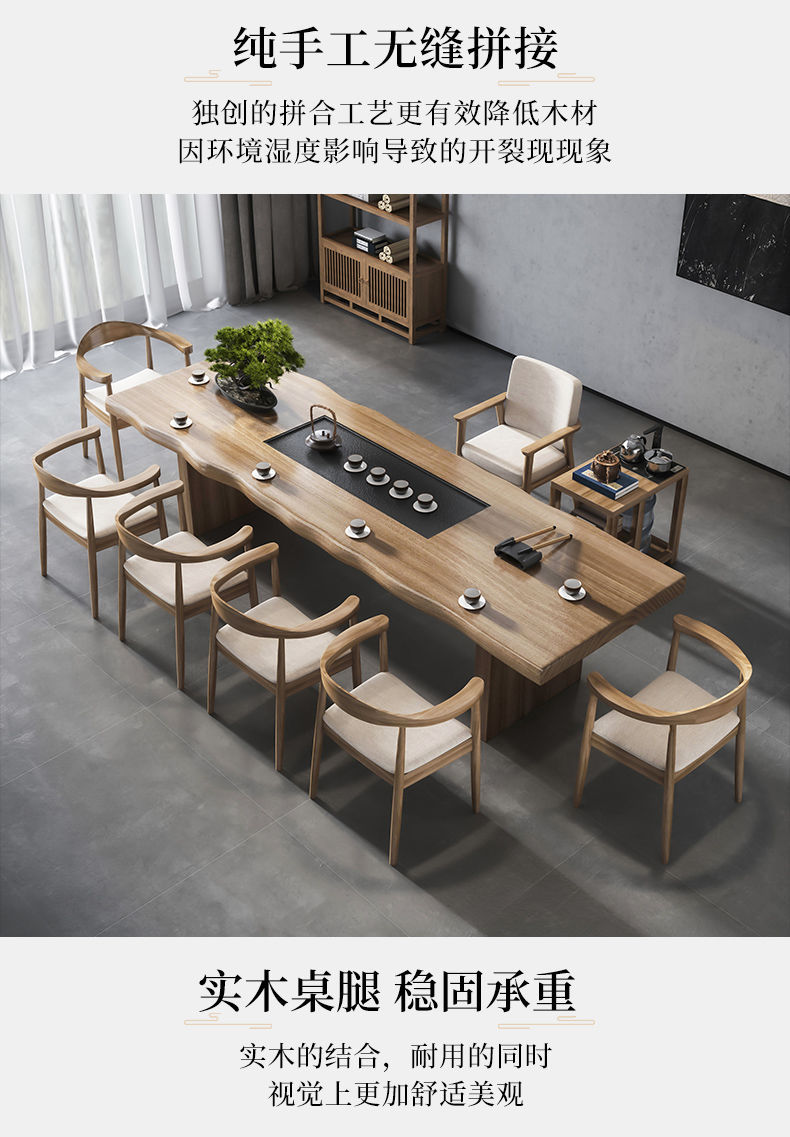 Trung Quốc mới Bàn trà gỗ chắc chắn Bàn trà Trung Quốc tấm lớn Bàn trà Bàn trà kết hợp ghế văn phòng nhà Zen phòng trà