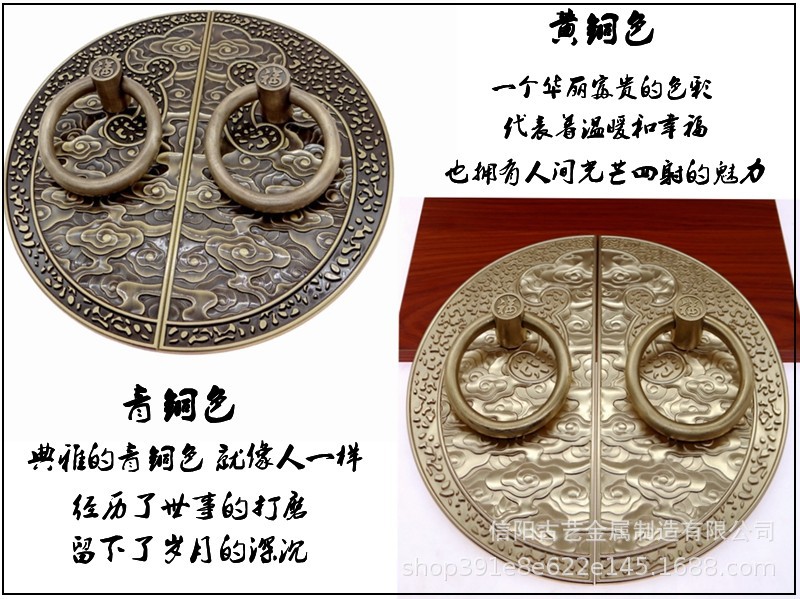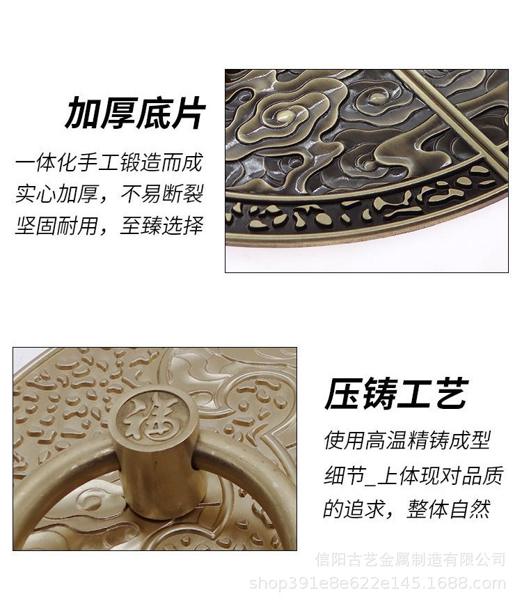 Mã số: A-4 Nhãn hiệu: Is Ancient Art General Người nộp thuế: Yes Chất liệu: Đồng Kiểu dáng: Tay cầm tròn Xử lý bề mặt: Đánh bóng Chống oxy hóa Thông số kỹ thuật: Đồng [Đường kính 35cm]/Đồng [Đường kính 55cm]/Đồng thau [Đường kính 35cm]/ Màu đồng thau [đường kính 55cm]/màu đồng thau [đường kính 55cm] Xử lý và tùy chỉnh: có hoặc không cung cấp xuất khẩu xuyên biên giới: không sử dụng sản phẩm: kiểu cổng: kiểu Trung Quốc mới