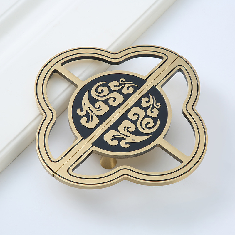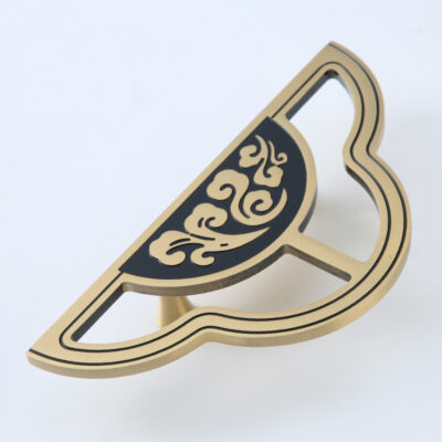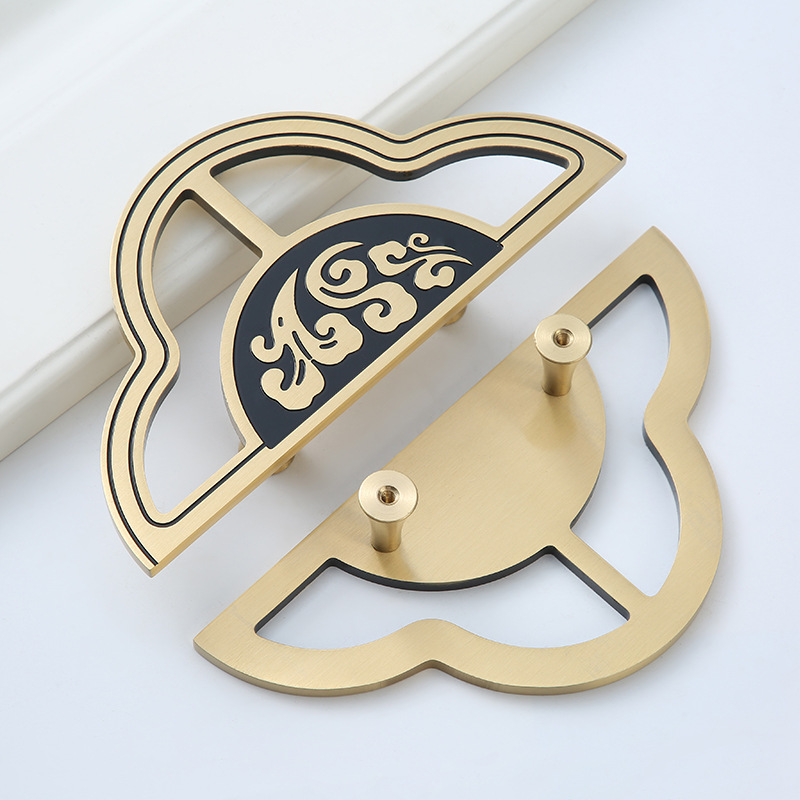Trung Quốc mới hình bán nguyệt tủ quần áo tay cầm bằng đồng dập nổi hoa văn đồ nội thất tay nắm cửa tủ vàng đồng nguyên chất tay cầm tùy chỉnh