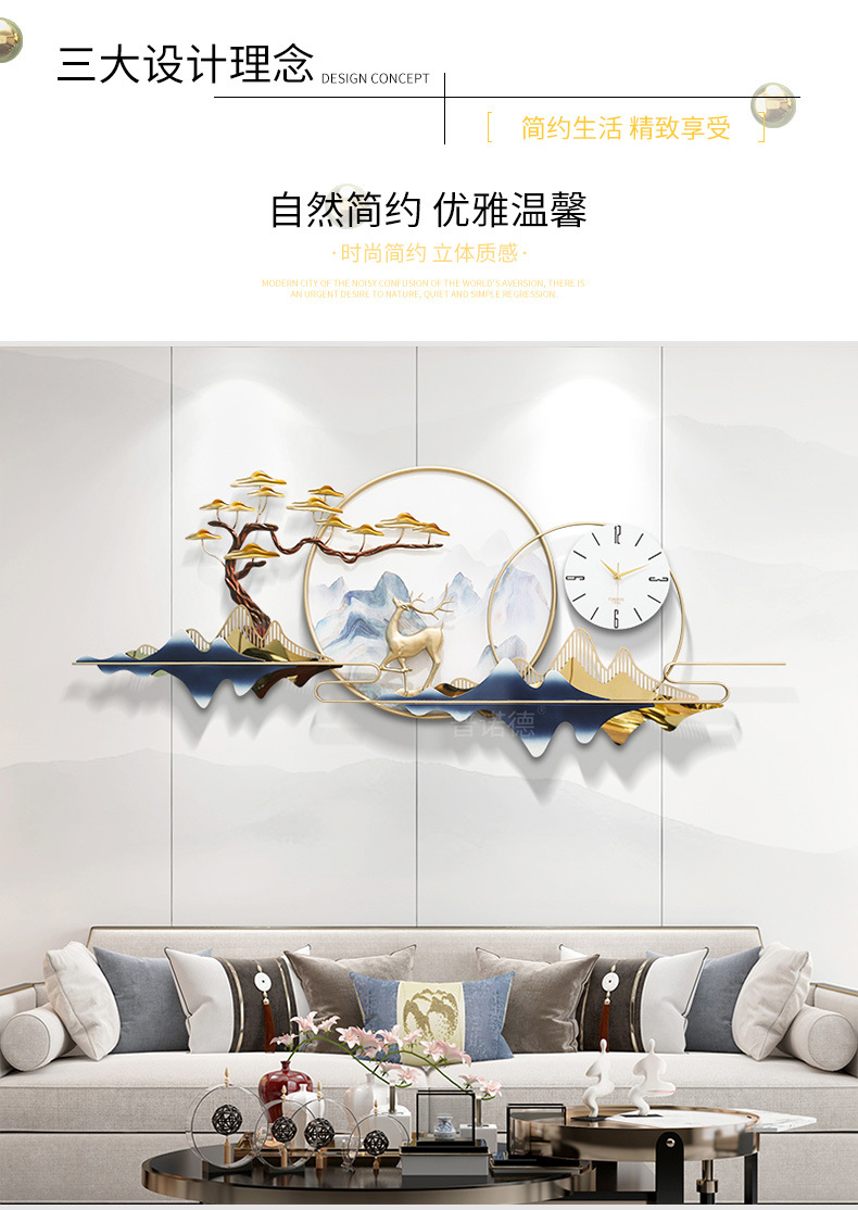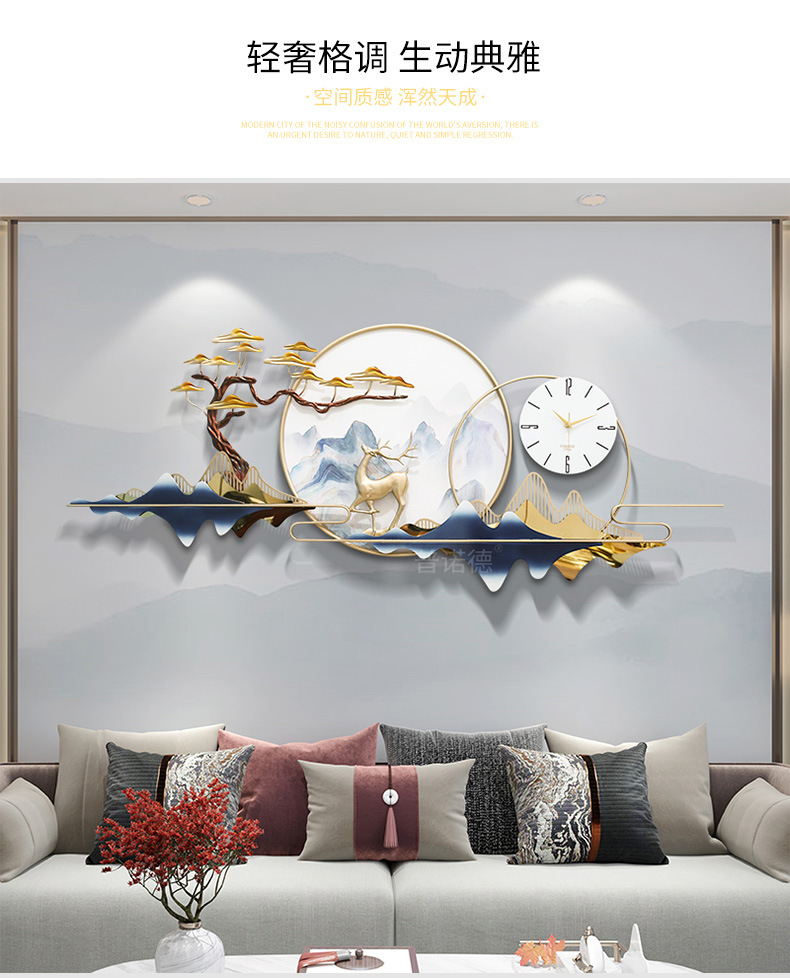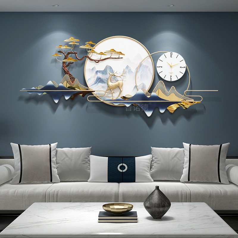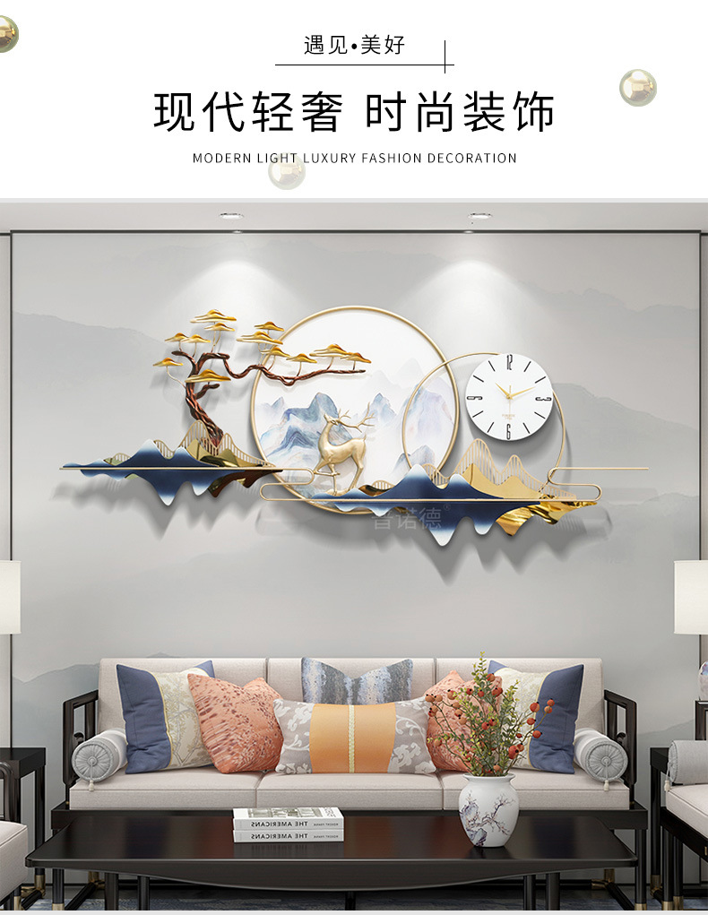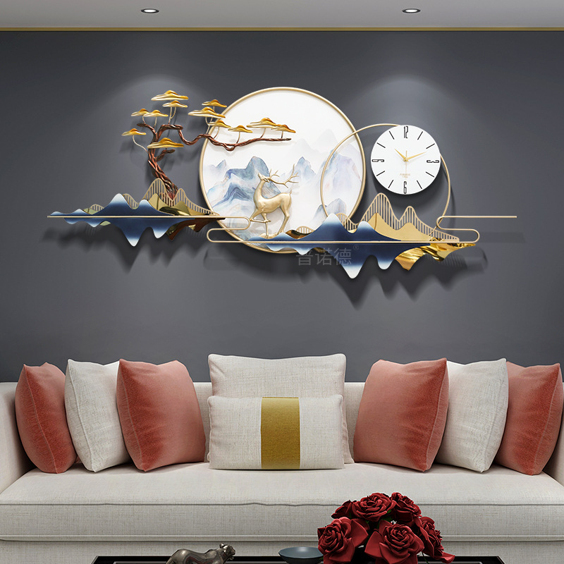 Trung Quốc mới phong cách ánh sáng sang trọng đồng hồ trang trí tường phòng khách đồng hồ treo tường hiên tắt tiếng đồng hồ treo tường hiện đại sáng tạo đồng hồ treo tường