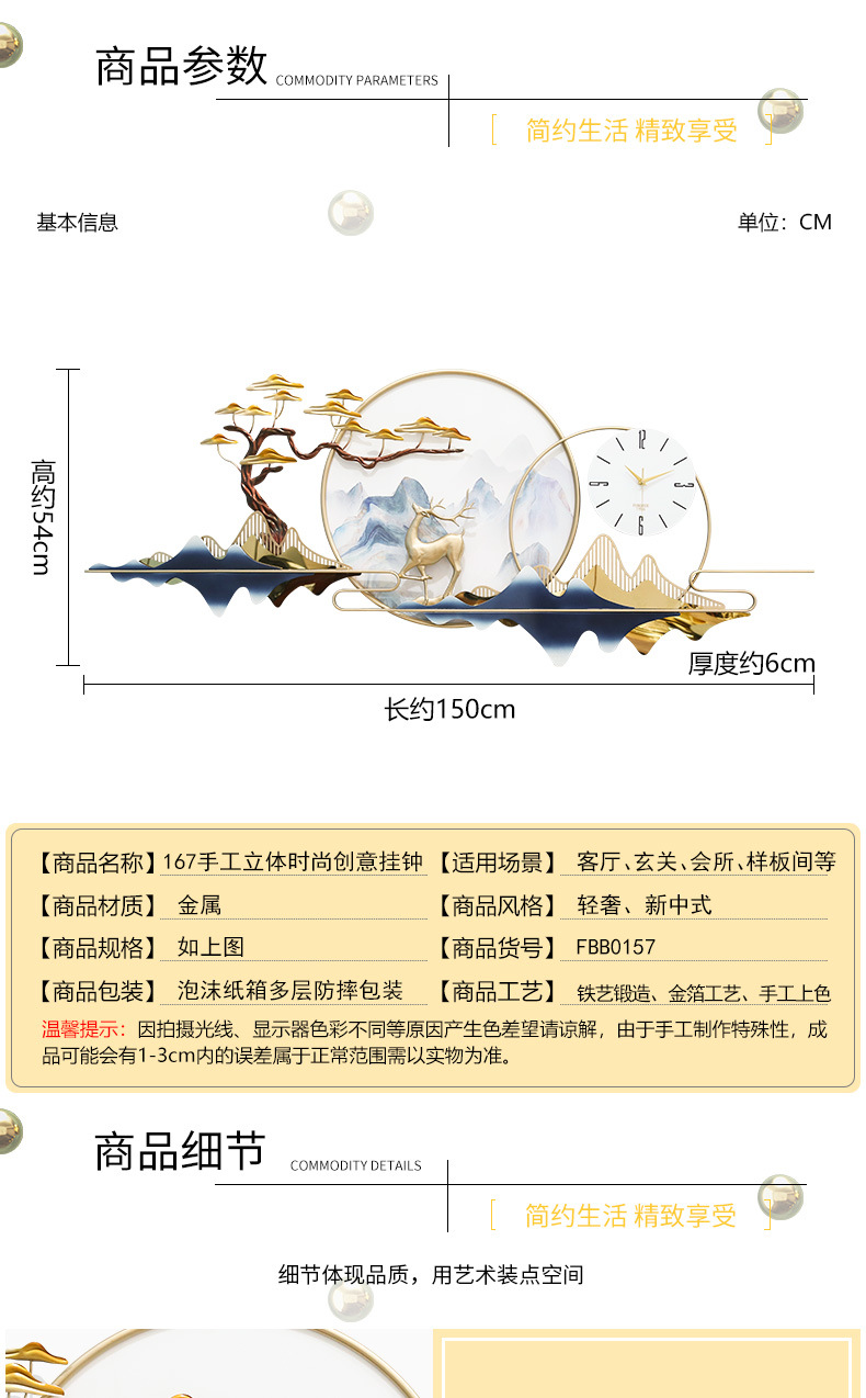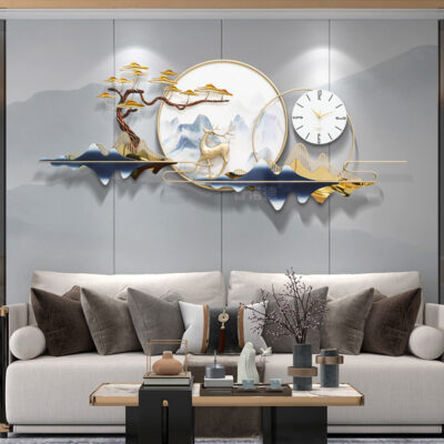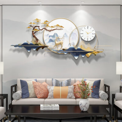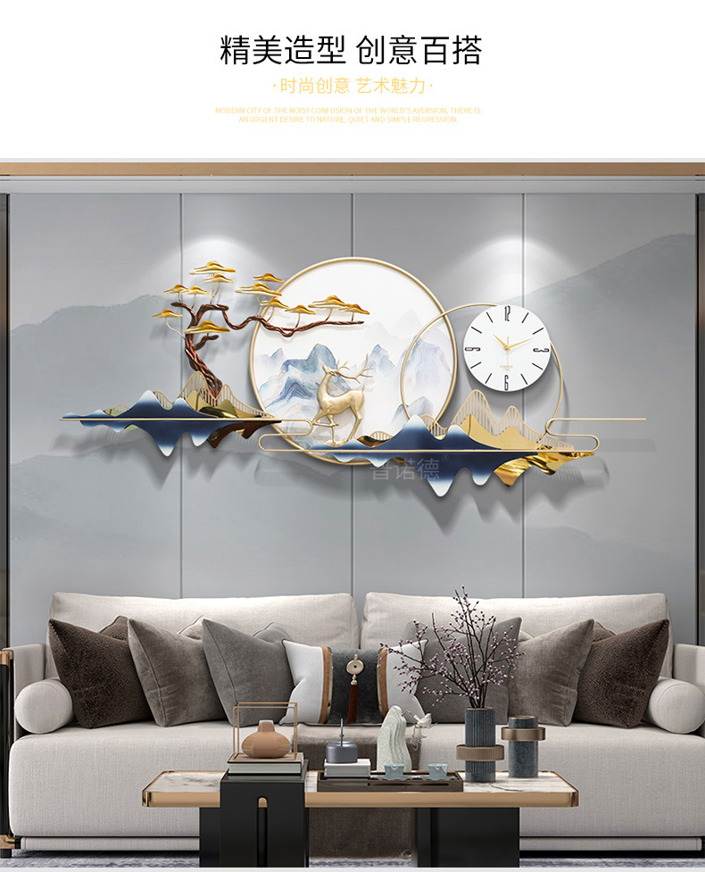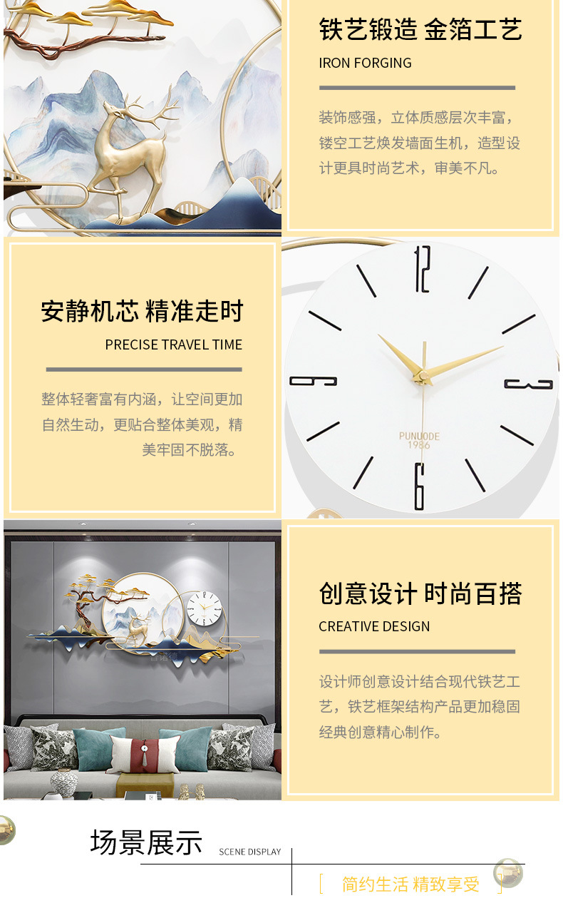 Trung Quốc mới phong cách ánh sáng sang trọng đồng hồ trang trí tường phòng khách đồng hồ treo tường hiên tắt tiếng đồng hồ treo tường hiện đại sáng tạo đồng hồ treo tường