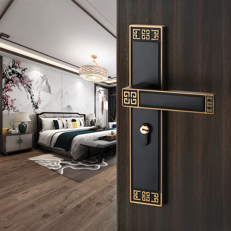 Trung Quốc Mới Phong Cách Cửa không ồn Nam Châm Khóa Đen Trong Nhà Phòng Ngủ Gỗ Chắc Chắn Cửa Khóa cửa Gỗ gia đình loại Đa Năng. Khóa cửa nhập khẩu theo yêu cầu.