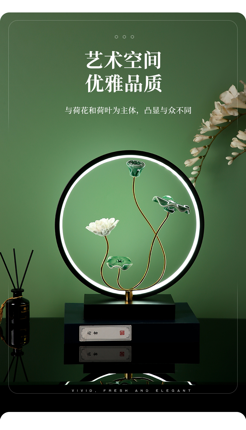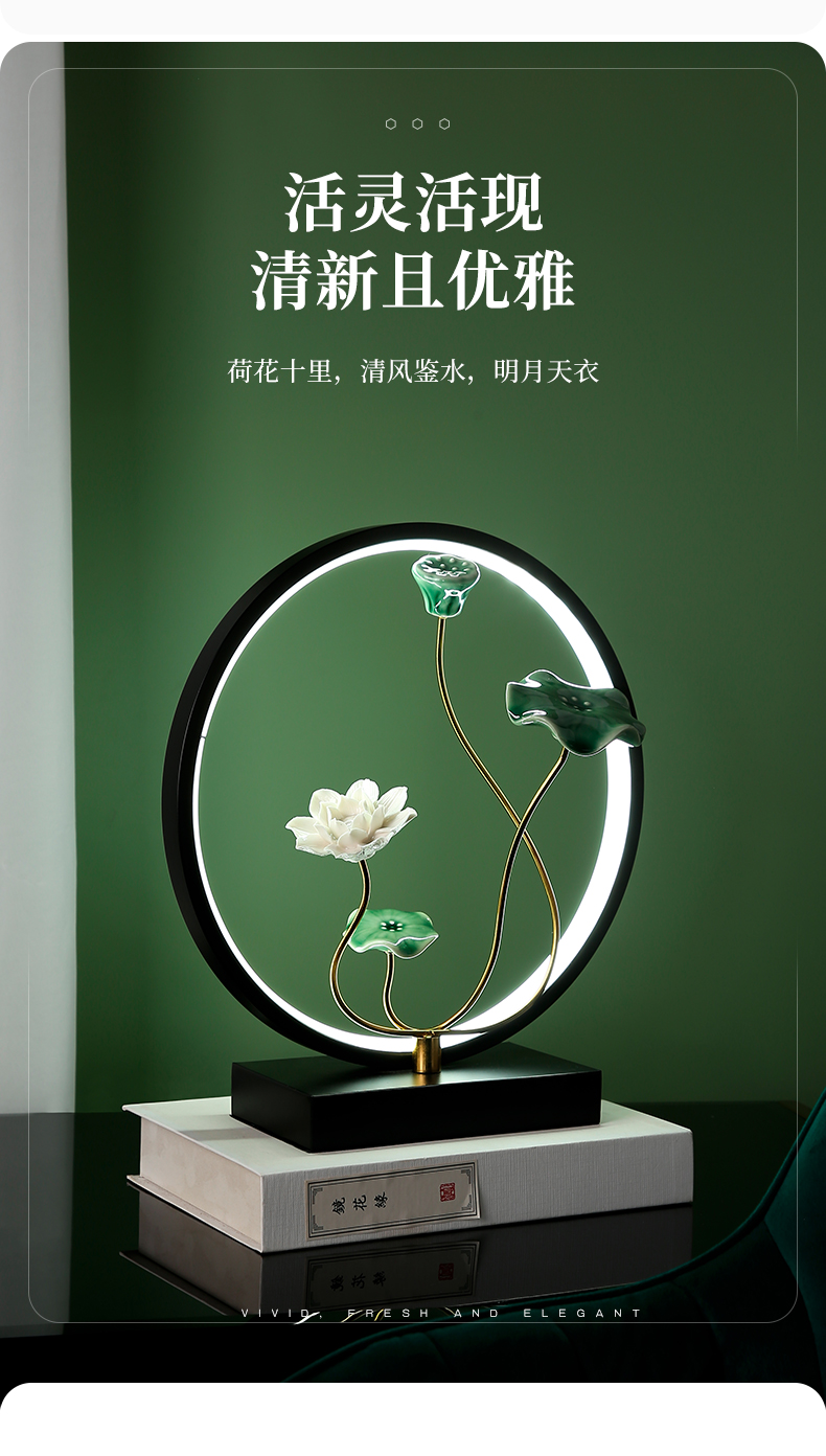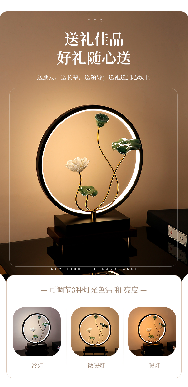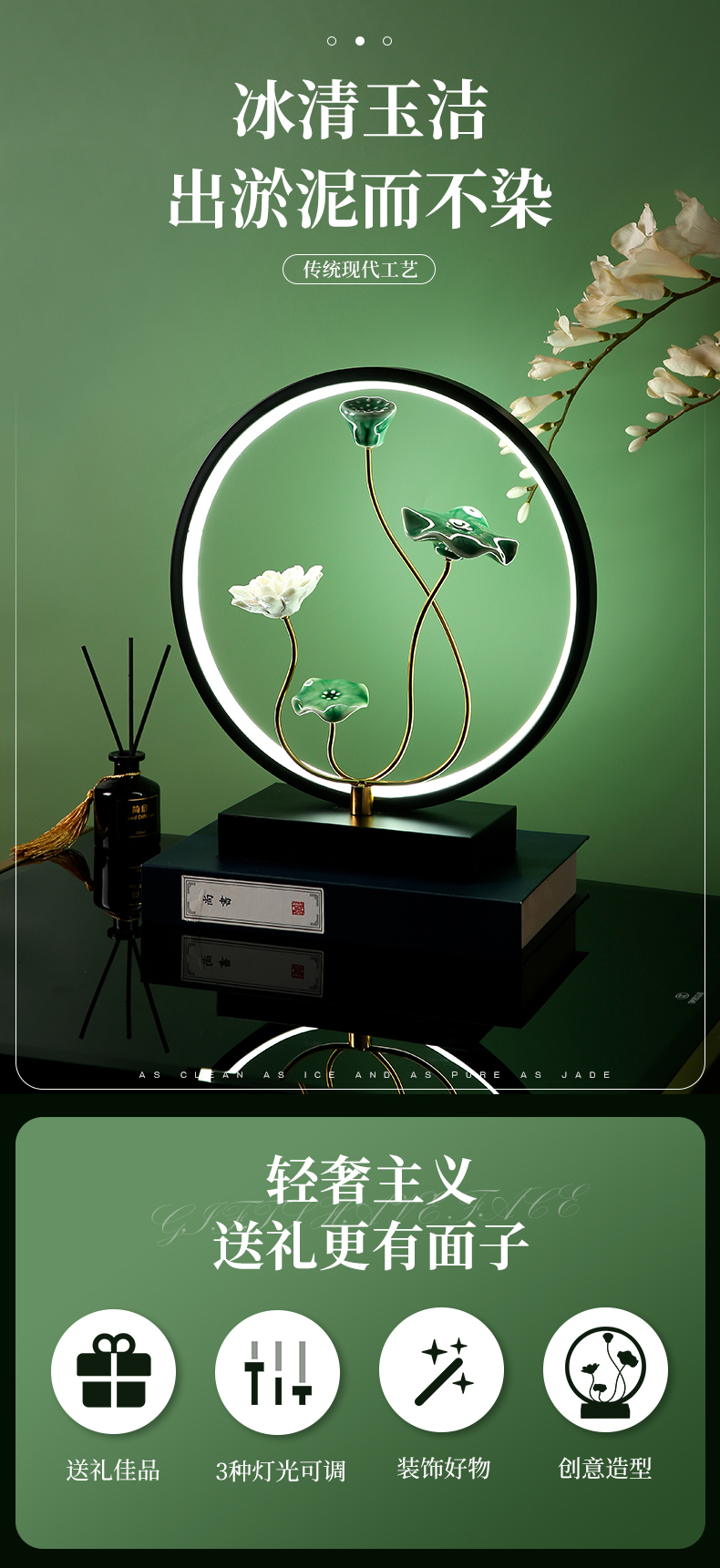 Trung Quốc mới trang trí hoa sen đèn bàn phòng khách phòng trà tủ rượu trang trí nhà ánh sáng sang trọng cao cấp trang trí mềm mại quà tặng tân gia