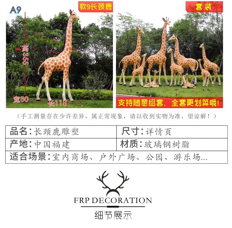 Trung tâm mua sắm ngoài trời lớn cộng đồng mẫu giáo động vật trang trí sân vườn bãi cỏ cảnh quan đồ trang trí mô phỏng điêu khắc hươu cao cổ là lựa chọn lý tưởng cho không gian công cộng, sân vườn hoặc khu đô thị. Sản phẩm giúp nâng cao hình ảnh chuyên nghiệp và sạch đẹp cho môi trường sống.