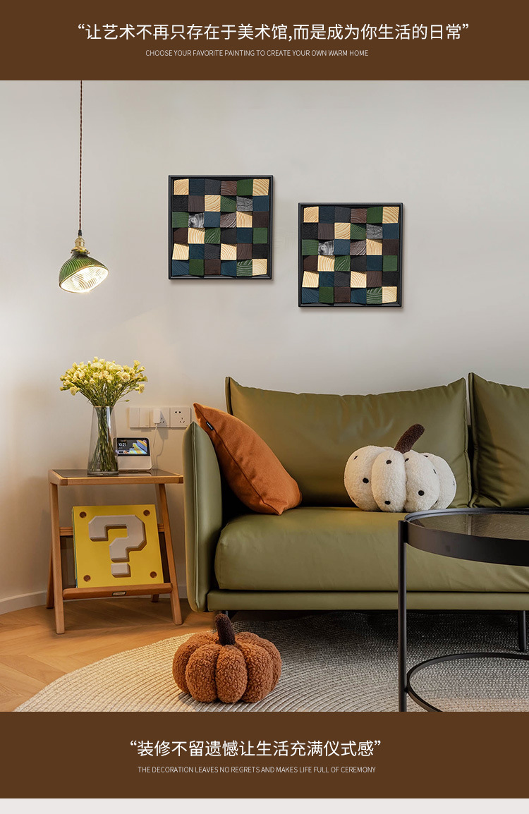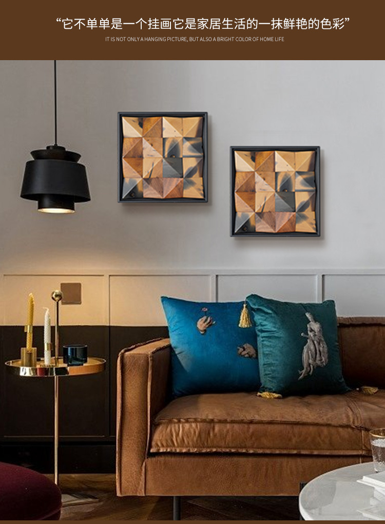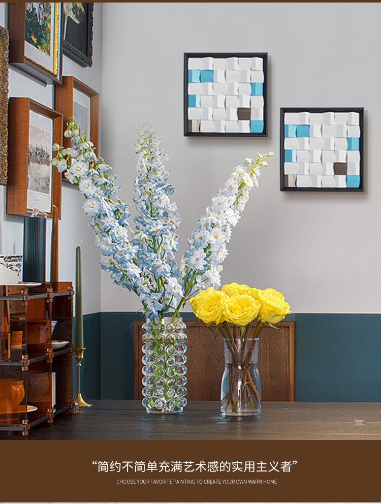 Trừu tượng hiện đại tối giản cao cấp ánh sáng sang trọng gió nền tường vuông ba chiều phòng khách treo tranh nhà hàng tranh trang trí