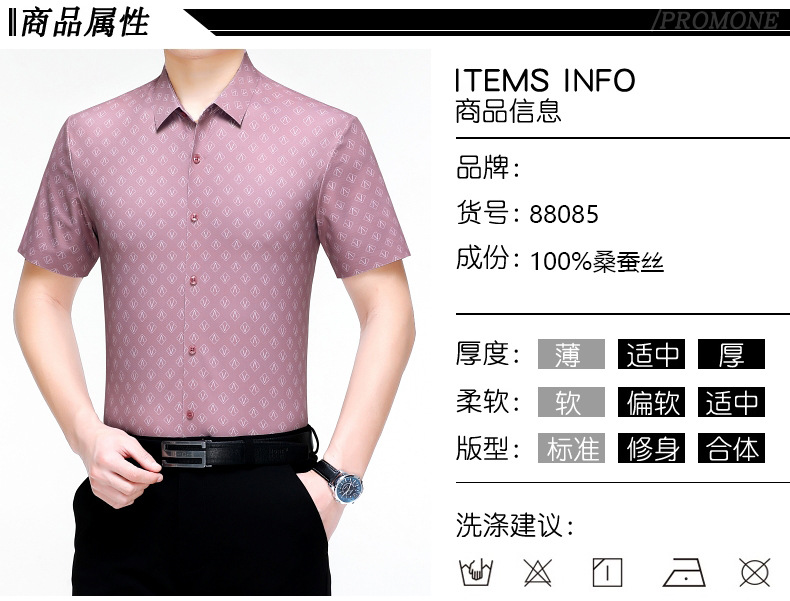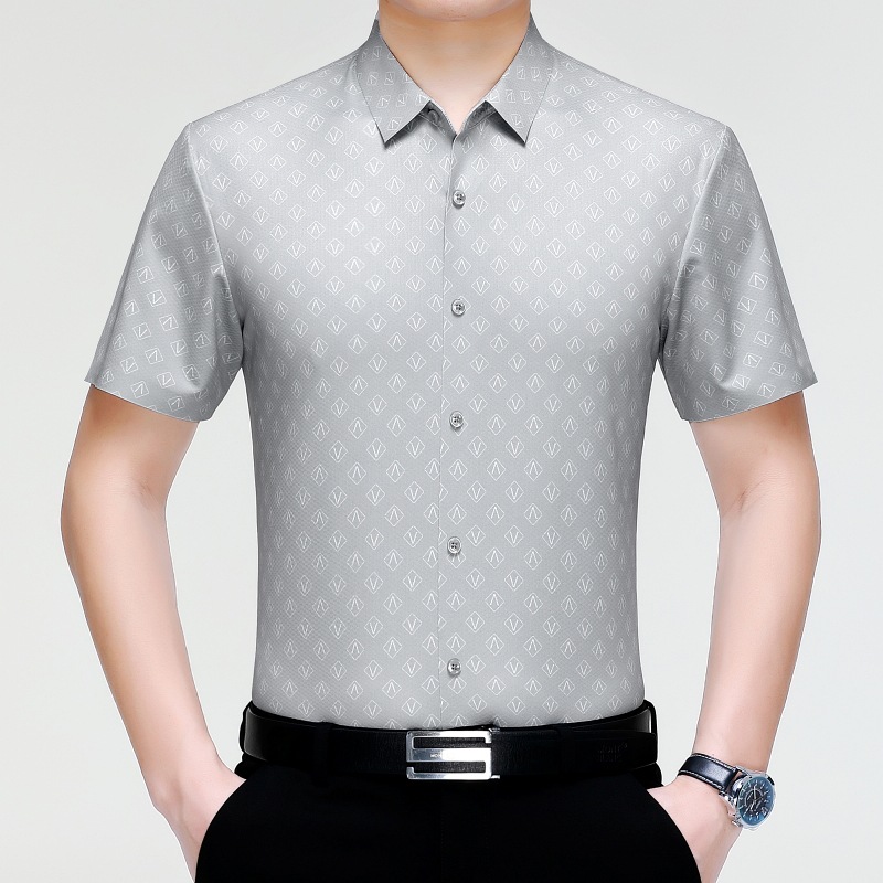 Truy cập thương hiệu lớn lụa dâu tằm áo sơ mi nam mùa hè công sở áo sơ mi nam không cần ủi áo sơ mi lụa nam cao cấp