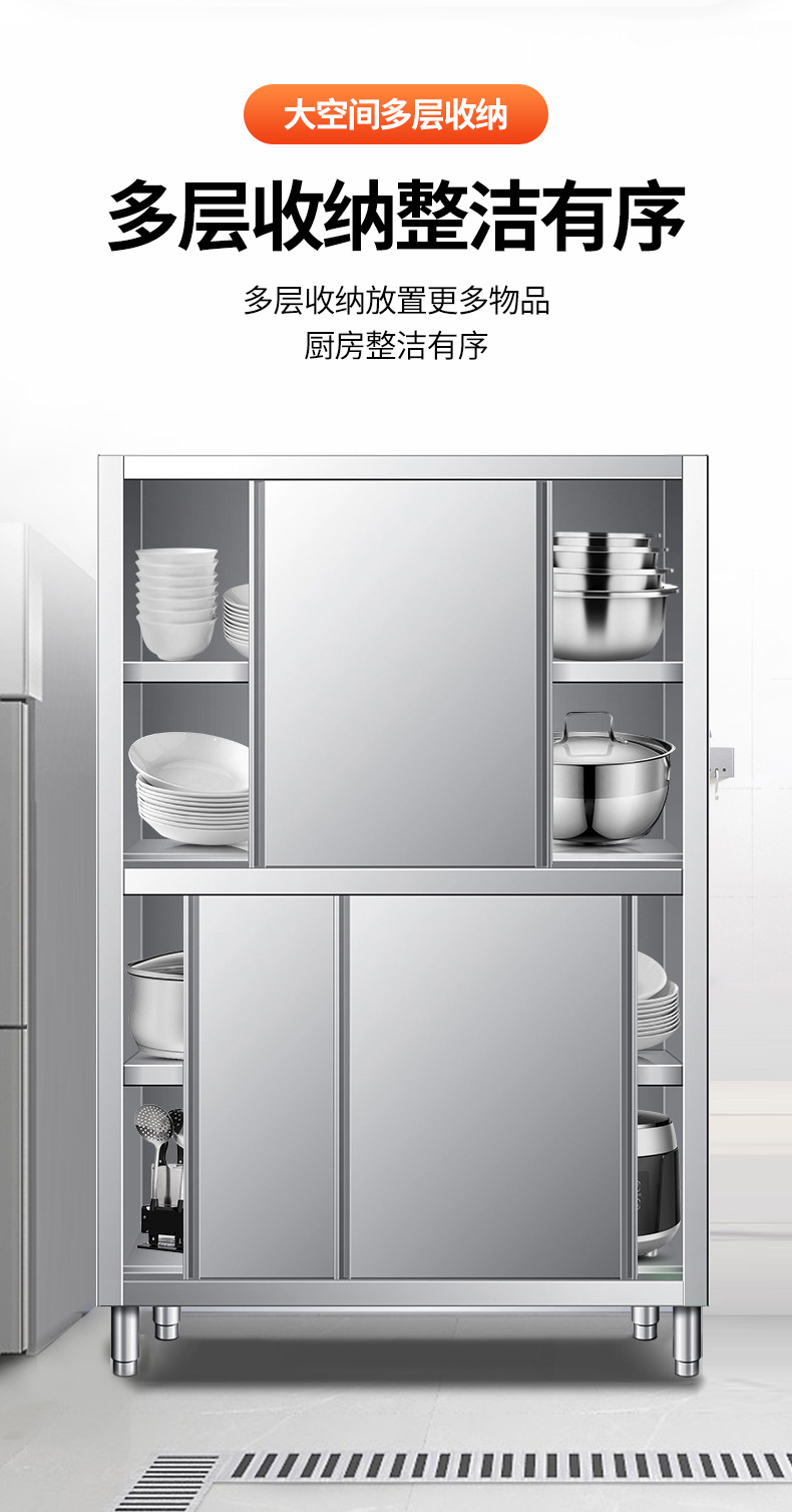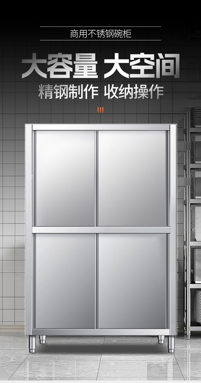 Tủ bốn cửa thương mại thép không gỉ thay đồ tủ bếp cửa trượt dọc tủ làm sạch bằng thép không gỉ tủ bảo quản