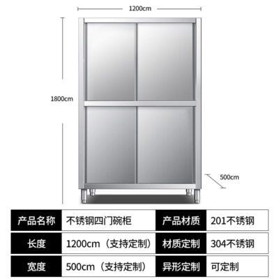 Tủ bốn cửa thương mại thép không gỉ thay đồ tủ bếp cửa trượt dọc tủ làm sạch bằng thép không gỉ tủ bảo quản