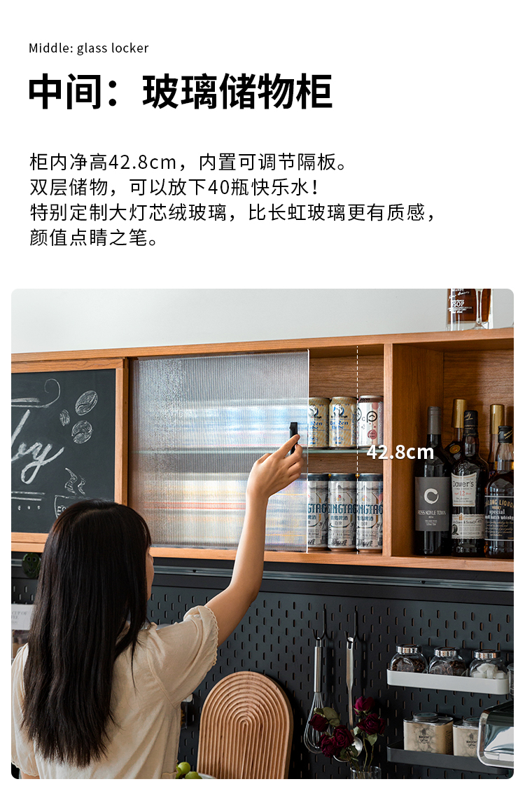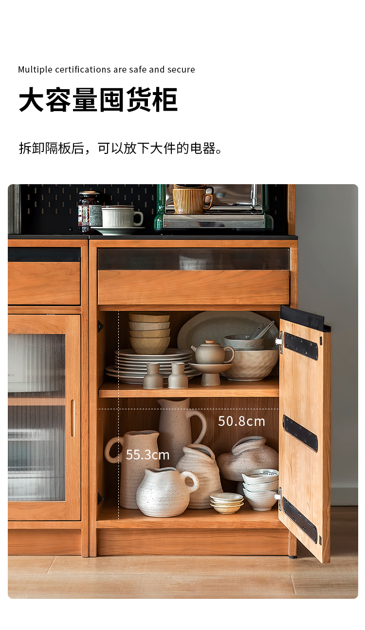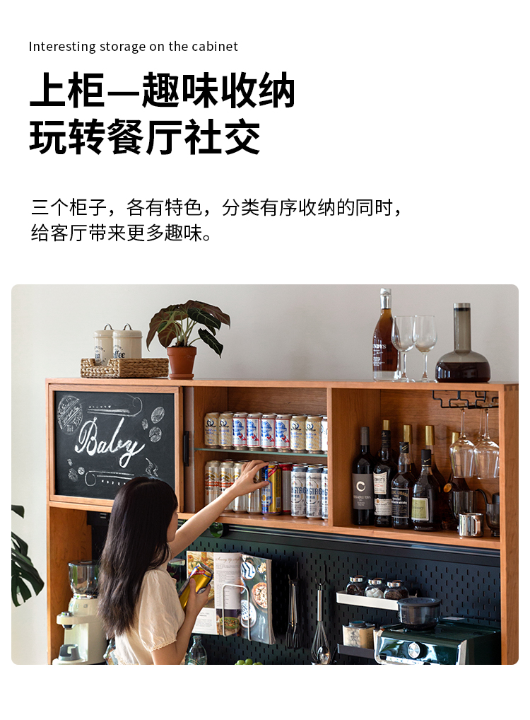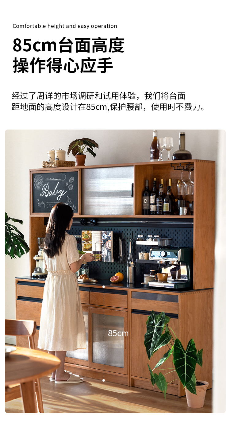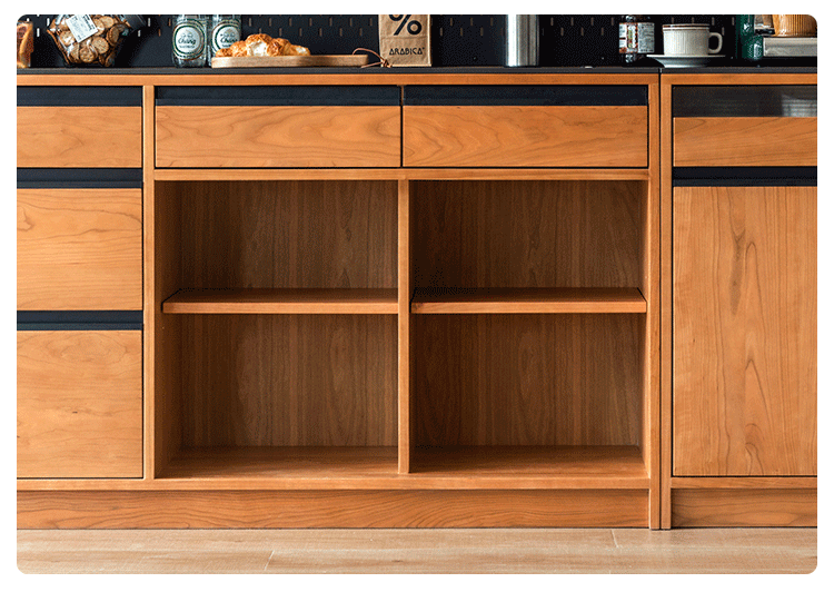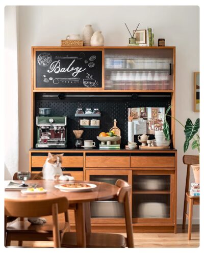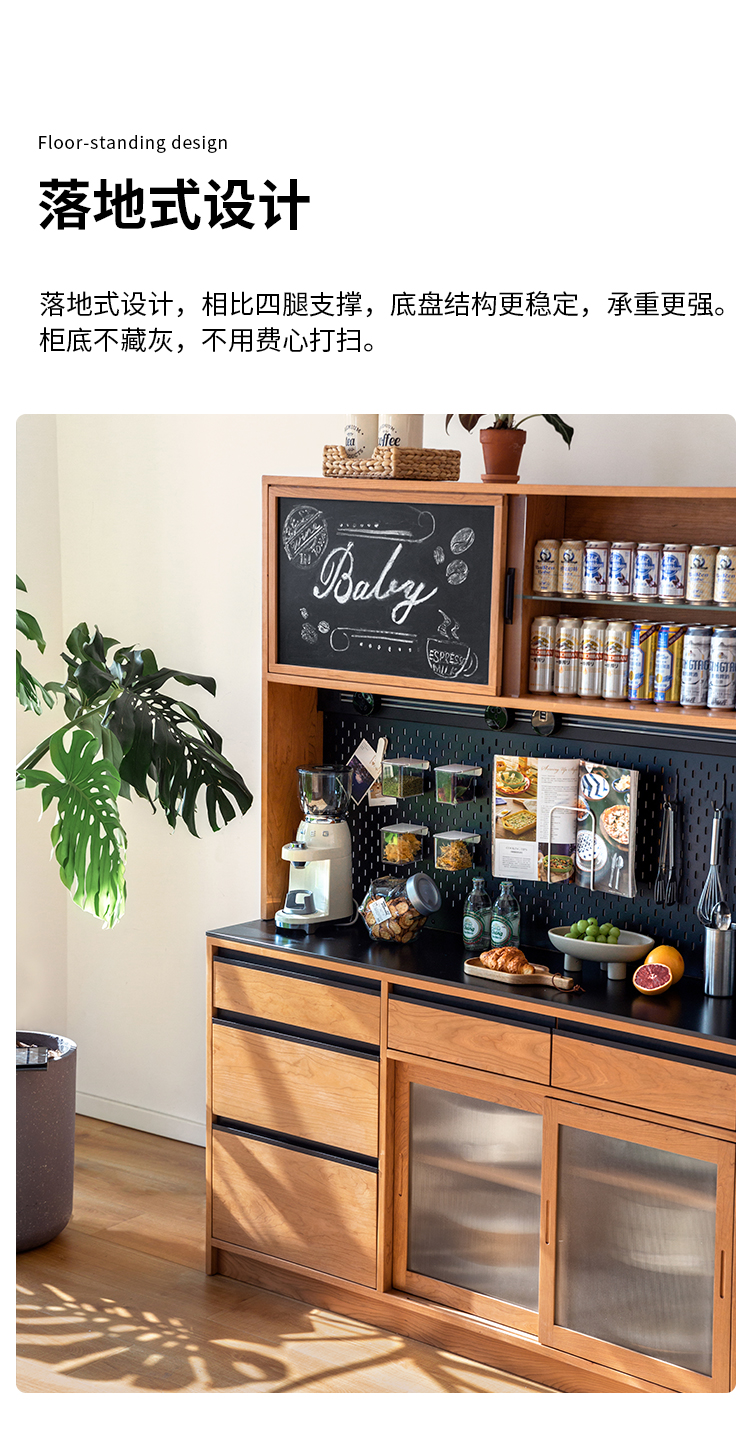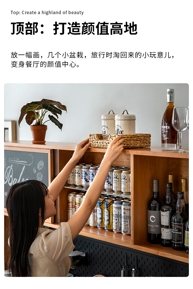 Tủ búp phê gỗ nguyên khối Bắc Âu gia đình căn hộ nhỏ cao từ trần đến sàn hoạt động bàn trà nhà hàng tủ để đồ đa chức năng kiểu Nhật