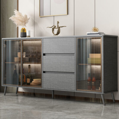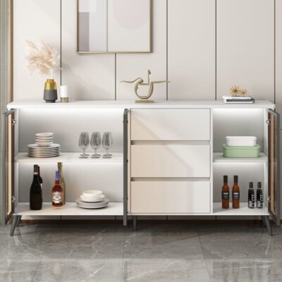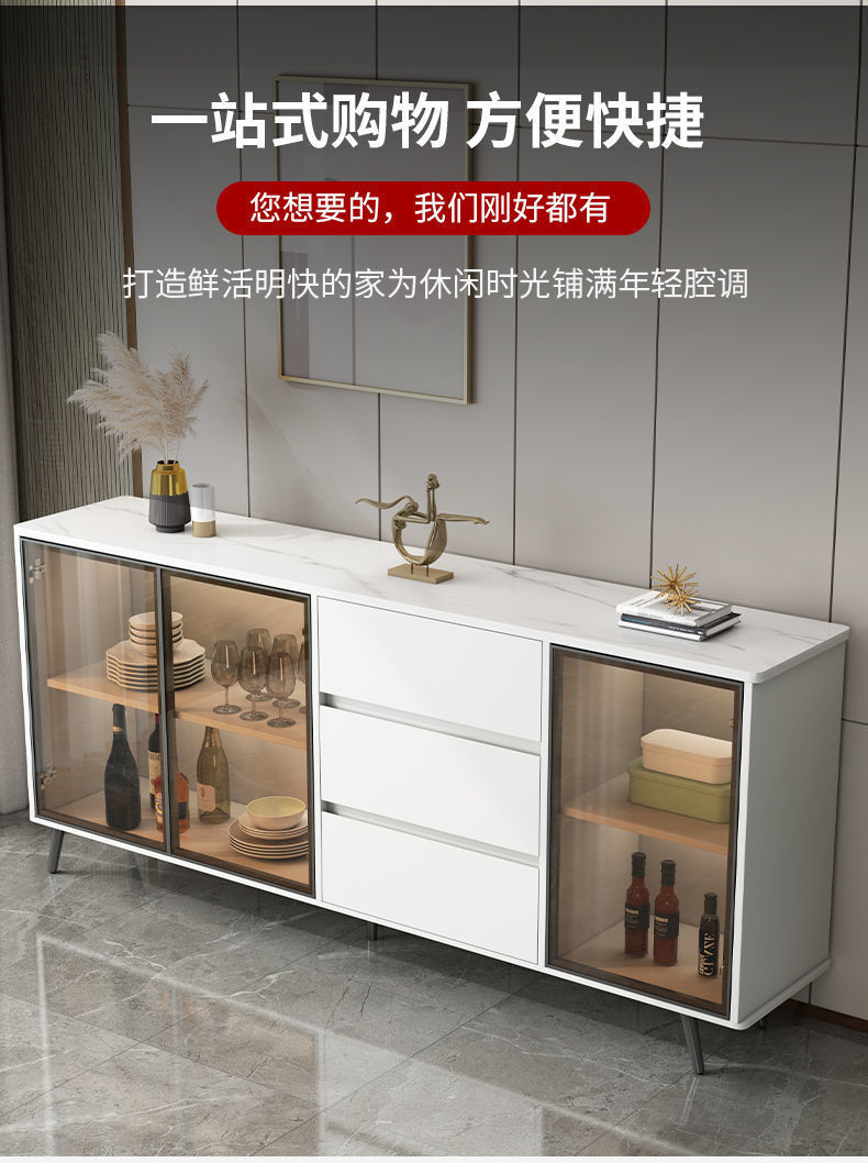 Tủ búp phê gỗ nguyên khối nhẹ sang trọng tấm đá tủ rượu nhà tủ trưng bày phòng khách tủ chè tủ bát tích hợp tủ âm tường