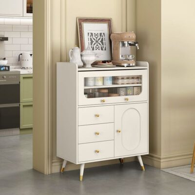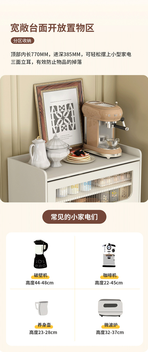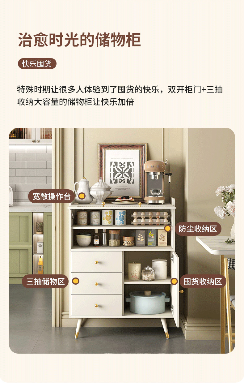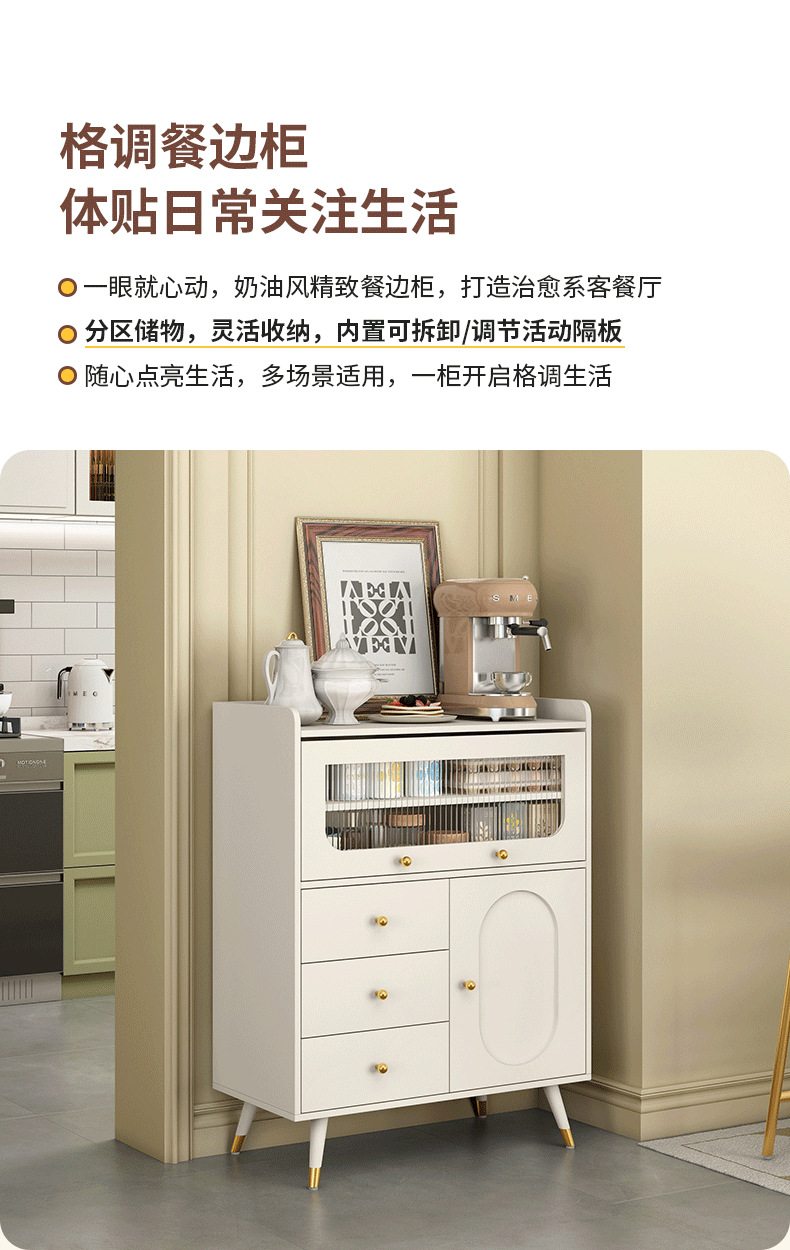 Tủ búp phê phong cách kem kiểu Pháp nhà bếp gia đình tủ để đồ nhỏ đa chức năng hiện đại tối giản bên tủ thay đồ tủ