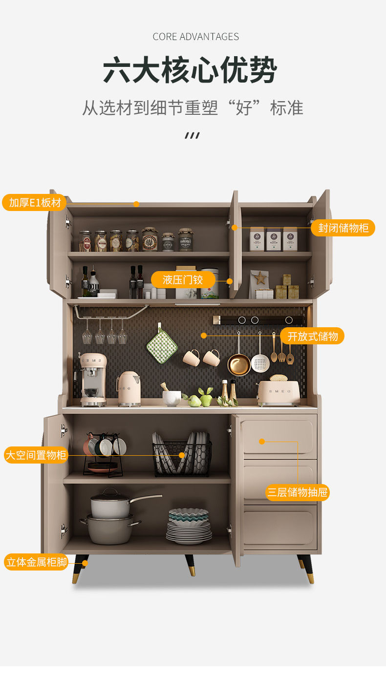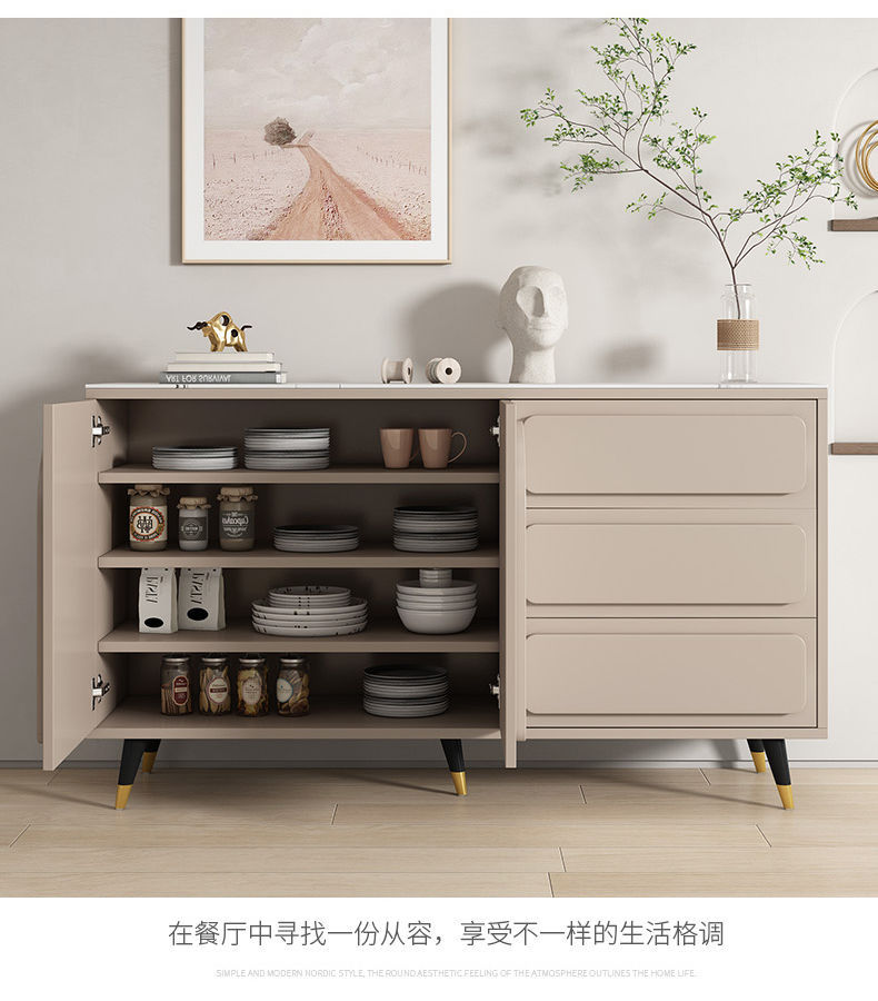 Tủ búp phê phong cách Ý nhẹ nhàng sang trọng đơn giản nhà bếp thay đồ phòng khách dựa vào tường đá tấm thay đồ tích hợp tủ chè