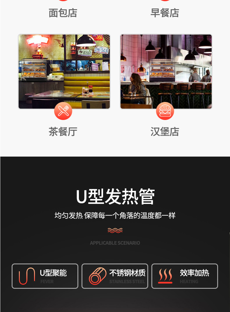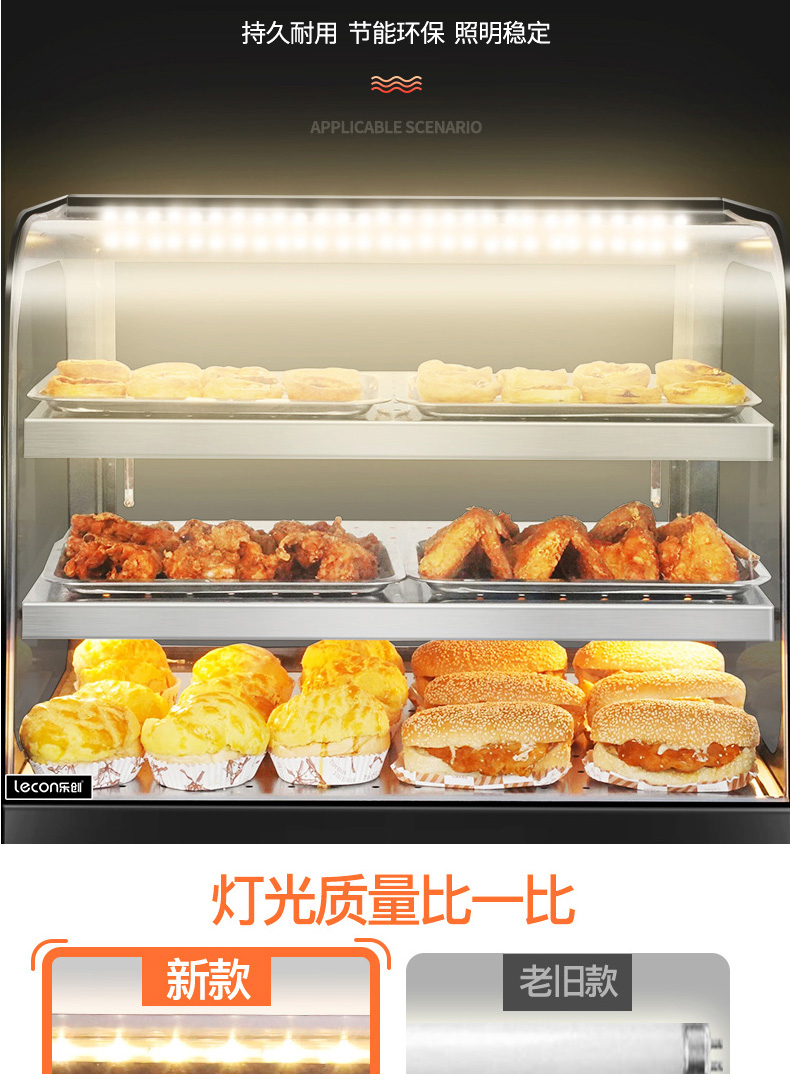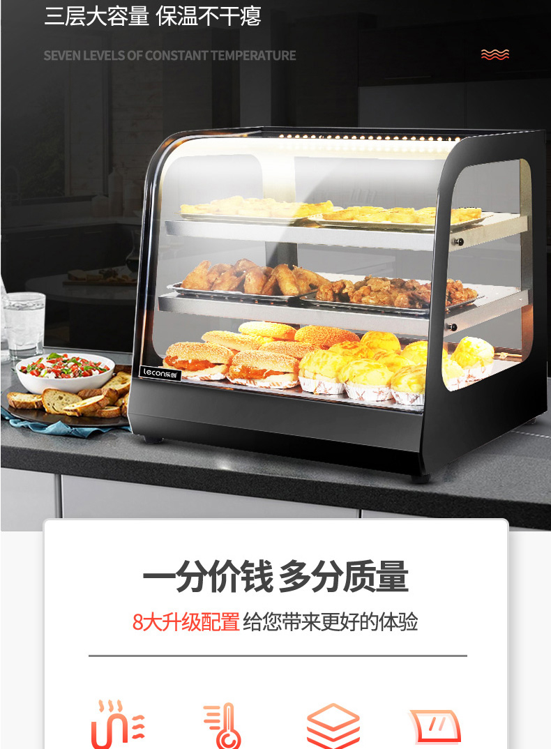 Tủ cách nhiệt thương mại, tủ trưng bày bánh hamburger, bánh trứng, bánh mì, gà rán và khoai tây chiên, hệ thống sưởi nhỏ, nhiệt độ không đổi, bộ điều nhiệt để bàn/ là thiết bị nằm trong danh mục Đồ nhà hàng > Tủ hâm nóng, được thiết kế chuyên dụng cho các nhà hàng cần sự tiện nghi và chuyên nghiệp.