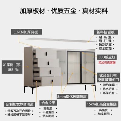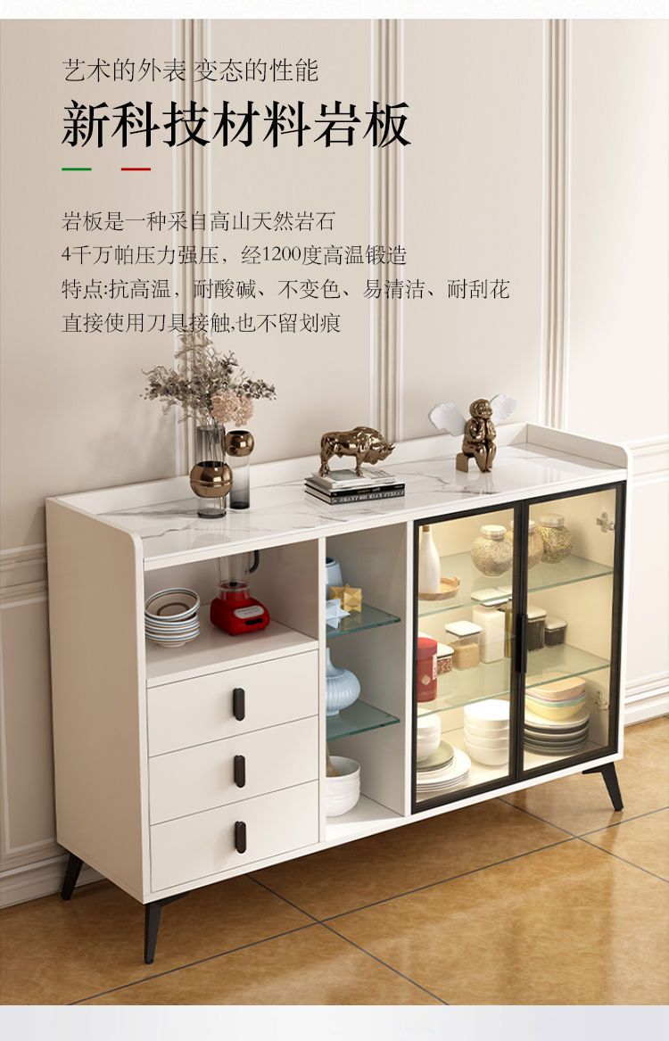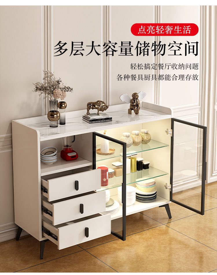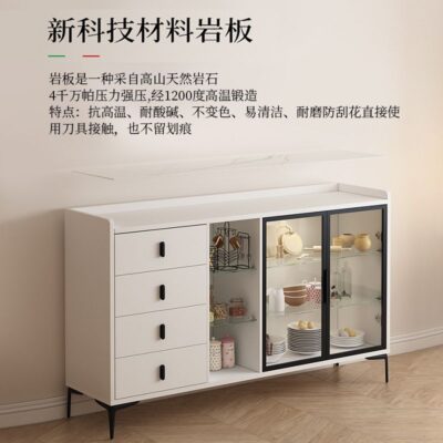 Tủ đá phiến tủ chè hiện đại đơn giản đẹp màu kem sang trọng tủ bát 1 vách ngăn cửa kính
