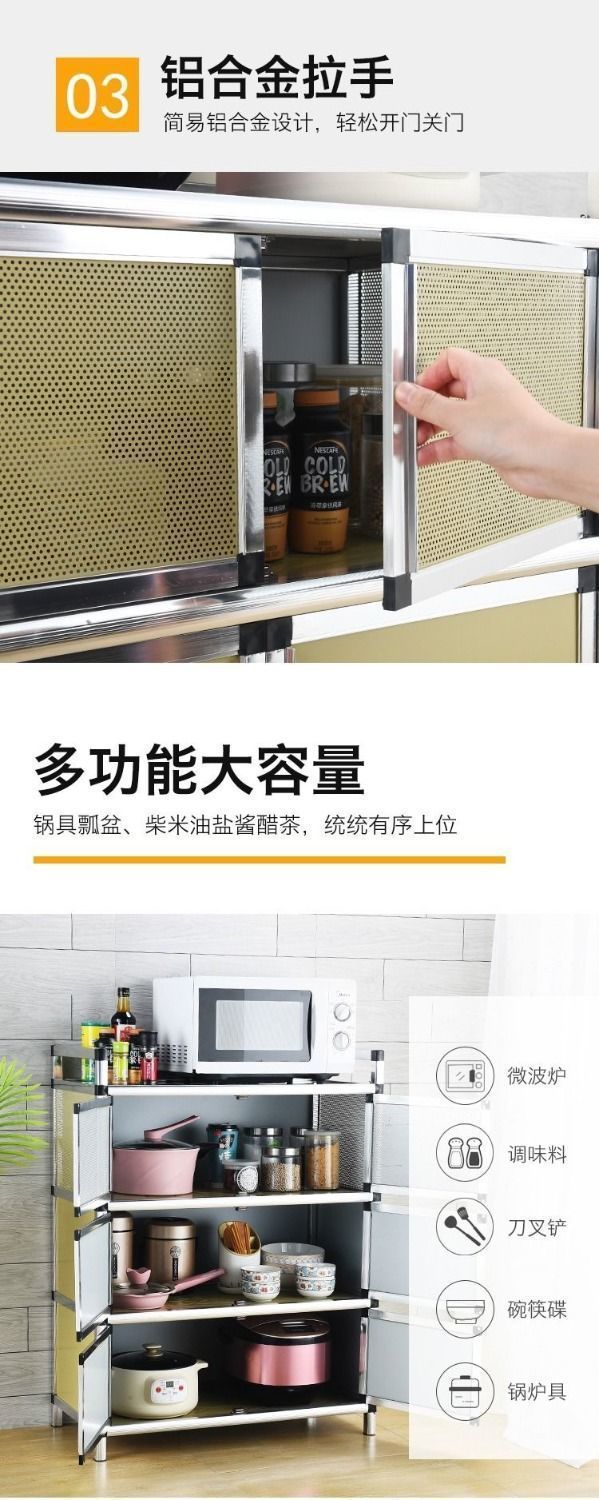 Tủ để đồ nhà bếp có cửa tủ giá tủ bếp hợp kim nhôm để đồ hộ gia đình đơn giản để đồ hệ thống sưởi tủ bếp