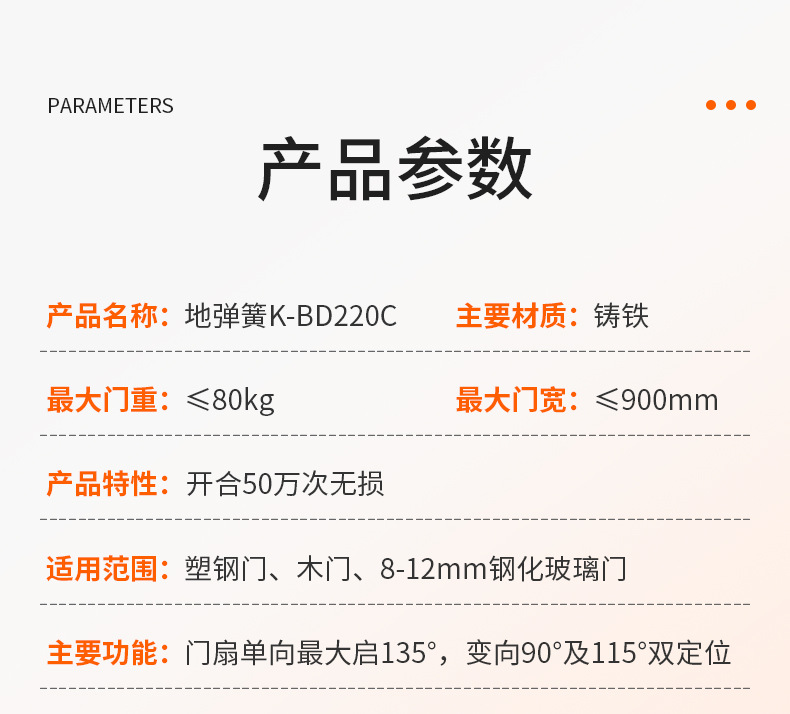 Mã sản phẩm: K-BD220C Thương hiệu: Chengda Kích thước ngoại hình: 225x100mm Mẫu mã: K-BD220C Kích thước cửa áp dụng: 900mm Độ mở cửa tối đa: 135 độ Thông số kỹ thuật: Chịu lực 80kg Gia công và tùy chỉnh: Không cung cấp độc quyền cho xuất khẩu xuyên biên giới: Không Kiểu dáng: Hiện đại và đơn giản Trọng lượng cửa chịu lực: 80kg