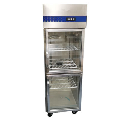 4.箱体立式结构,门为双层高强度钢化玻璃门,透明保温,可视安全又方便;