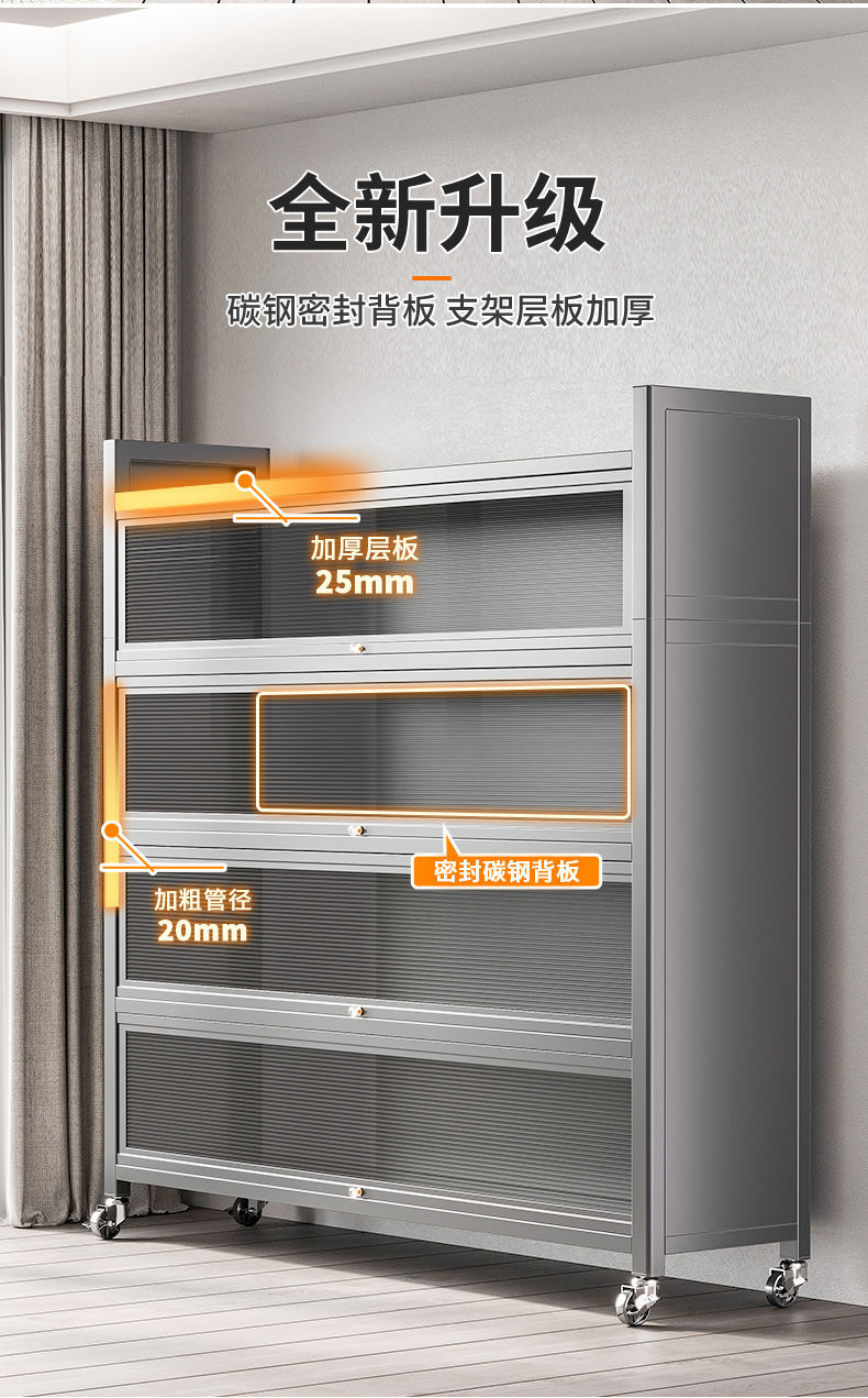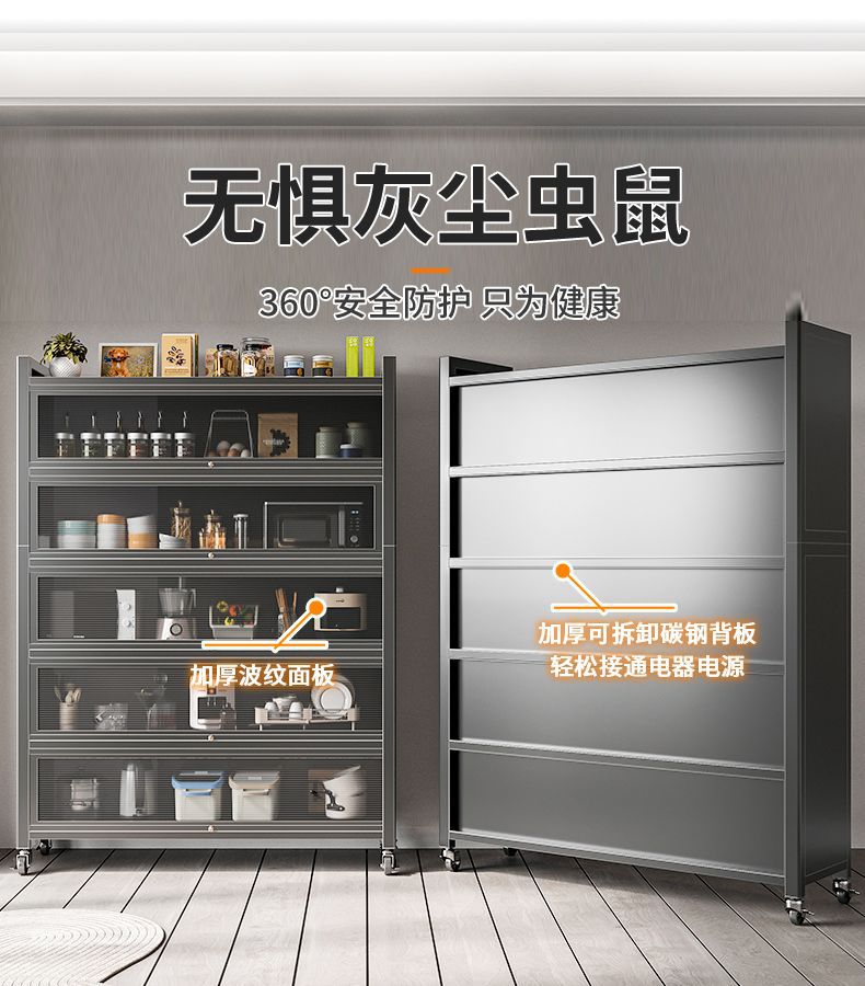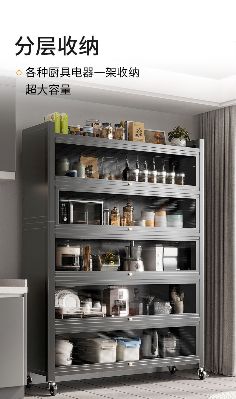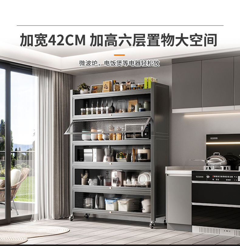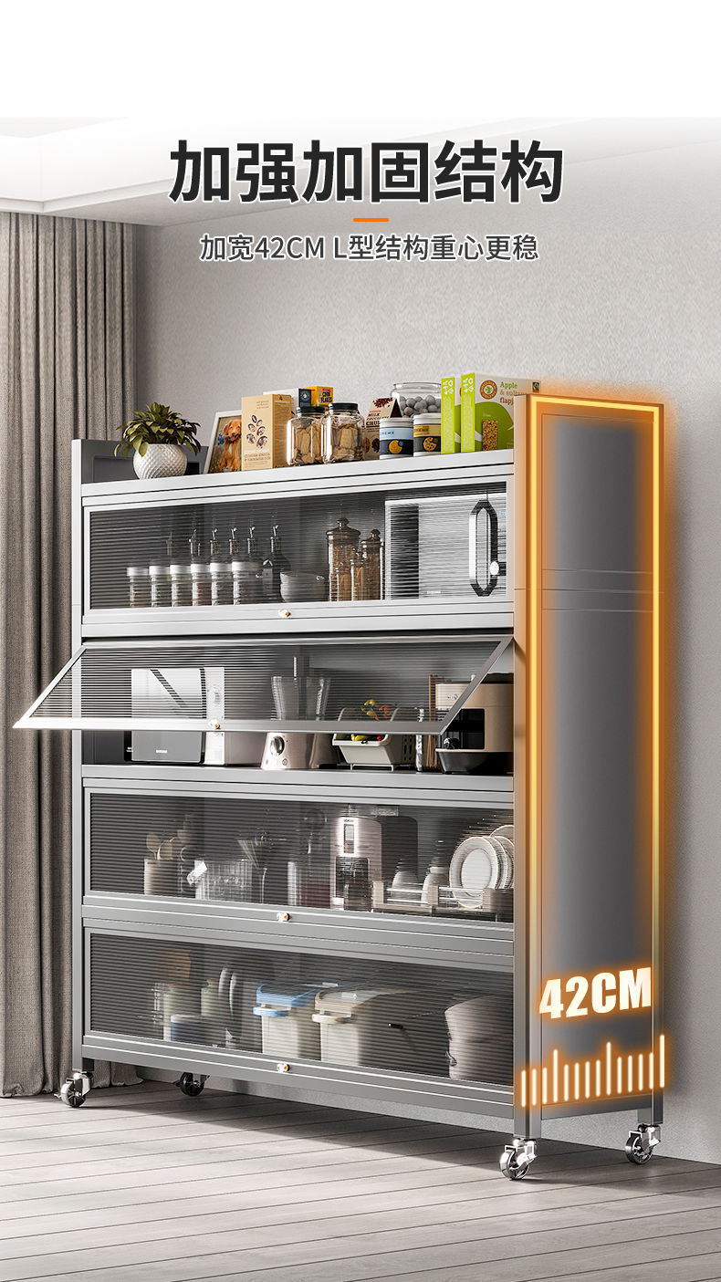 Tủ đựng đồ gia dụng nhiều tầng cao từ trần đến sàn có cửa tủ giá bếp bát đa năng tủ búp phê tủ tủ khóa