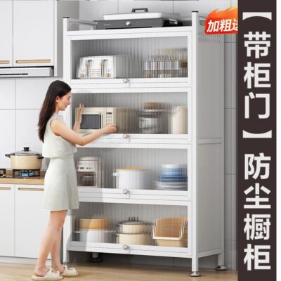 Tủ đựng đồ gia dụng nhiều tầng cao từ trần đến sàn có cửa tủ giá bếp bát đa năng tủ búp phê tủ tủ khóa