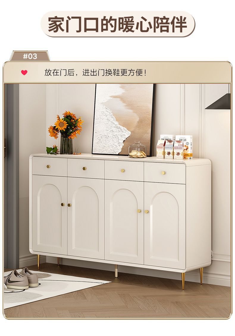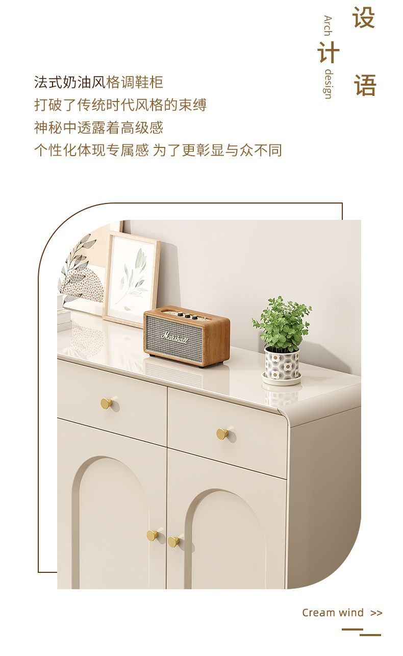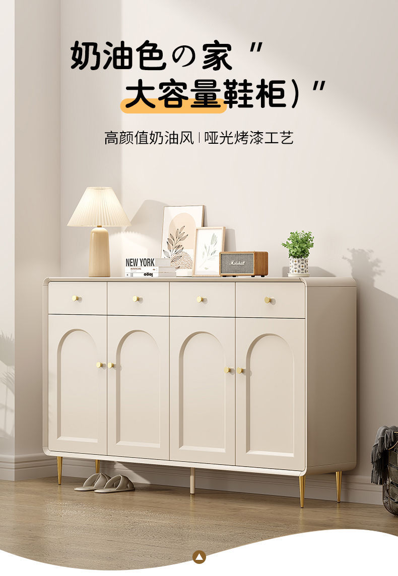 Tủ giày gia đình sang trọng kiểu Pháp nhẹ tủ siêu sảnh tích hợp tủ giày cửa kiểu kem mới