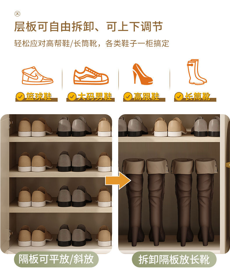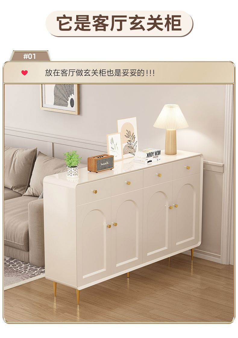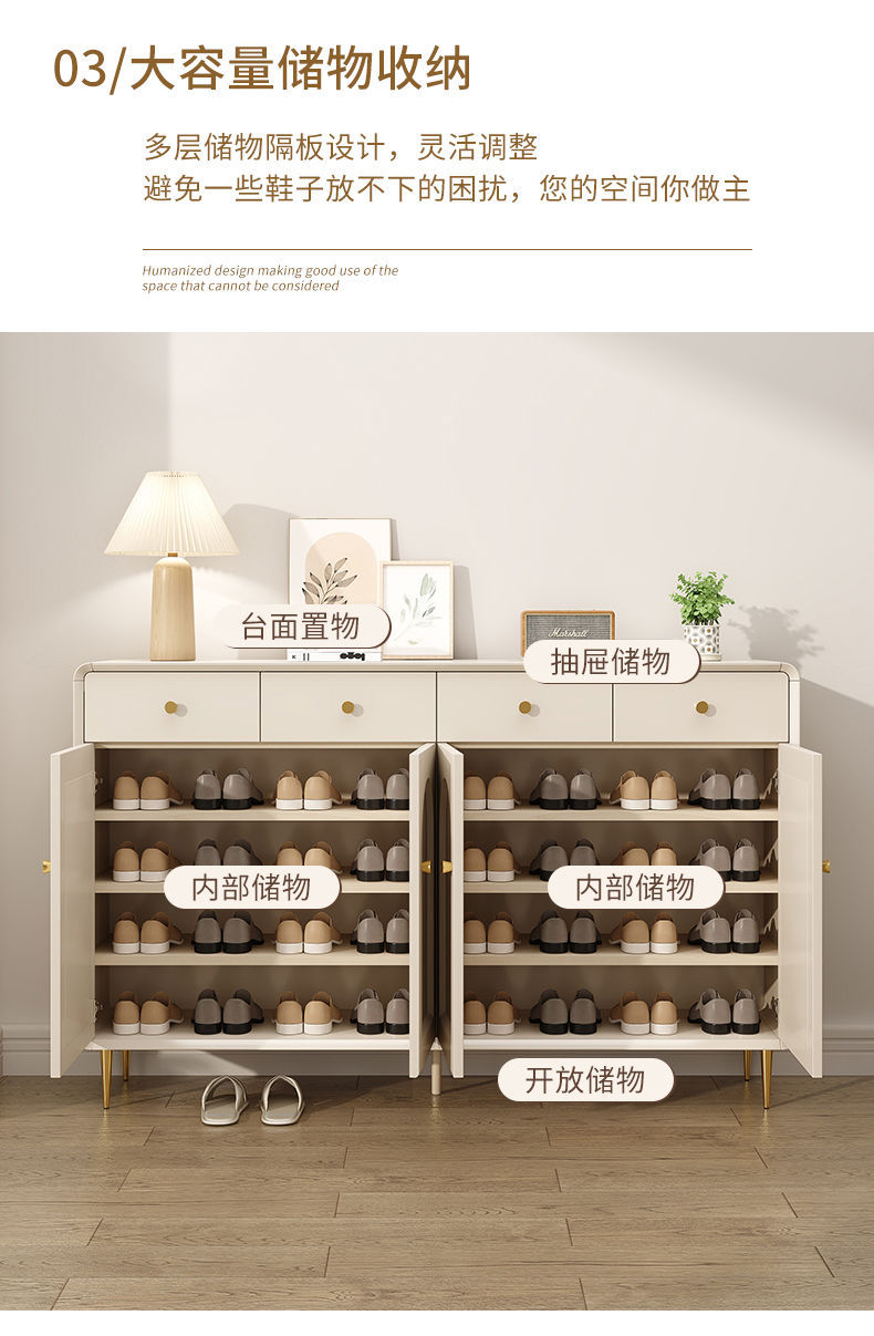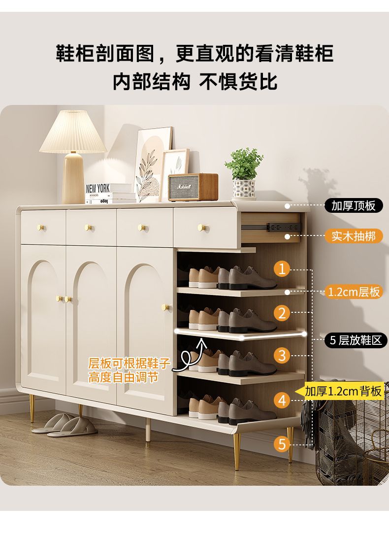 Tủ giày gia đình sang trọng kiểu Pháp nhẹ tủ siêu sảnh tích hợp tủ giày cửa kiểu kem mới