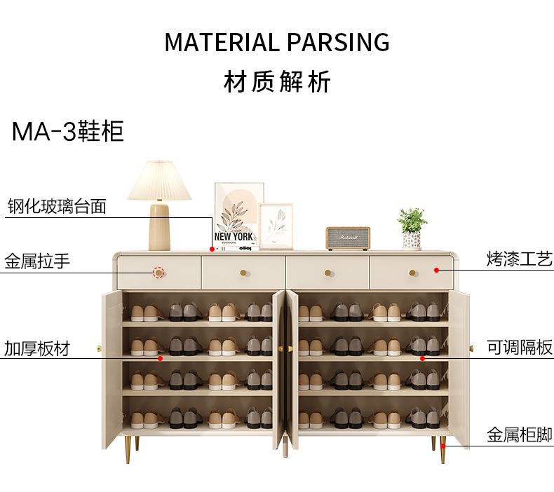 Tủ giày gia đình sang trọng kiểu Pháp nhẹ tủ siêu sảnh tích hợp tủ giày cửa kiểu kem mới