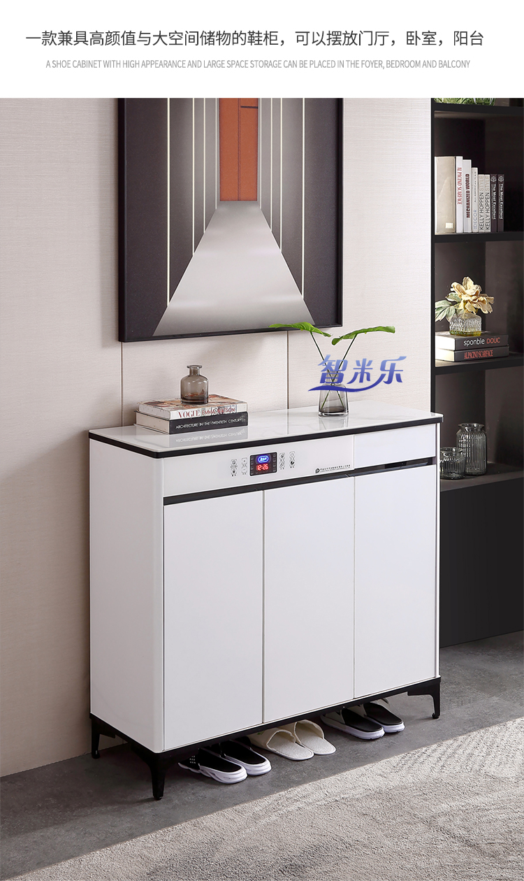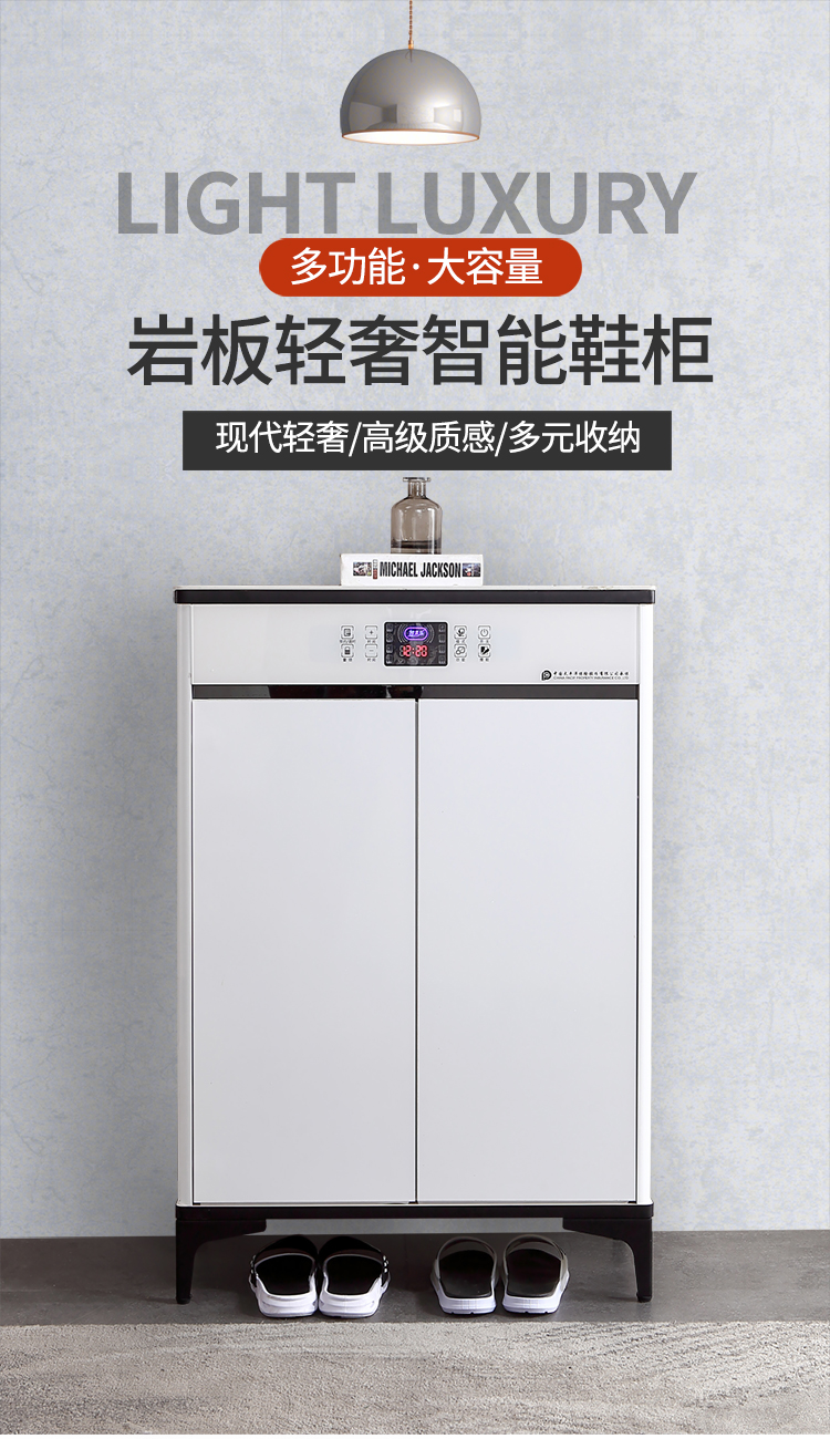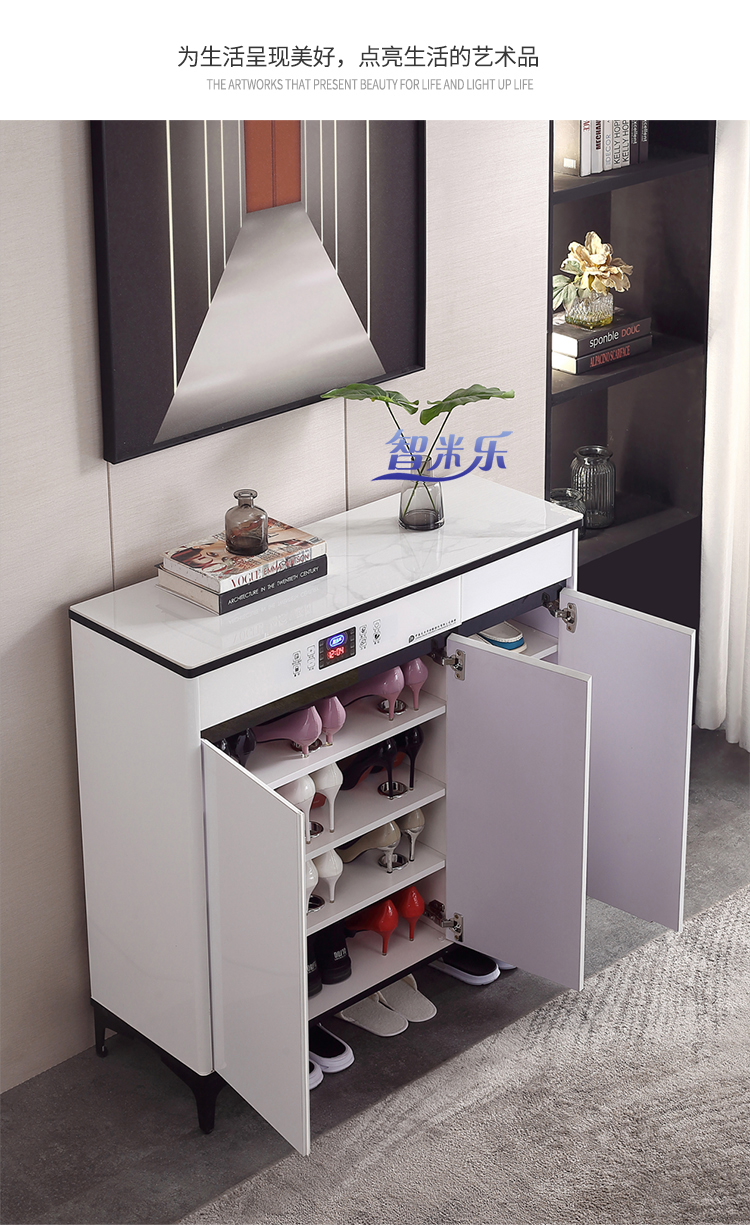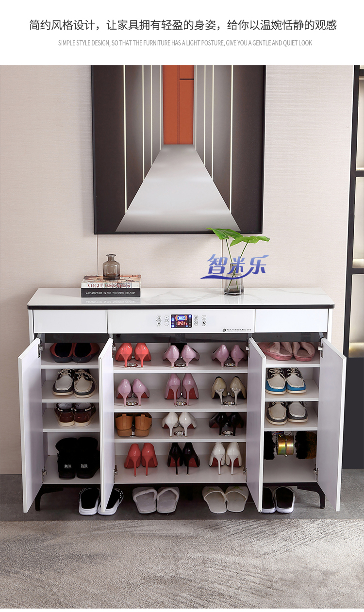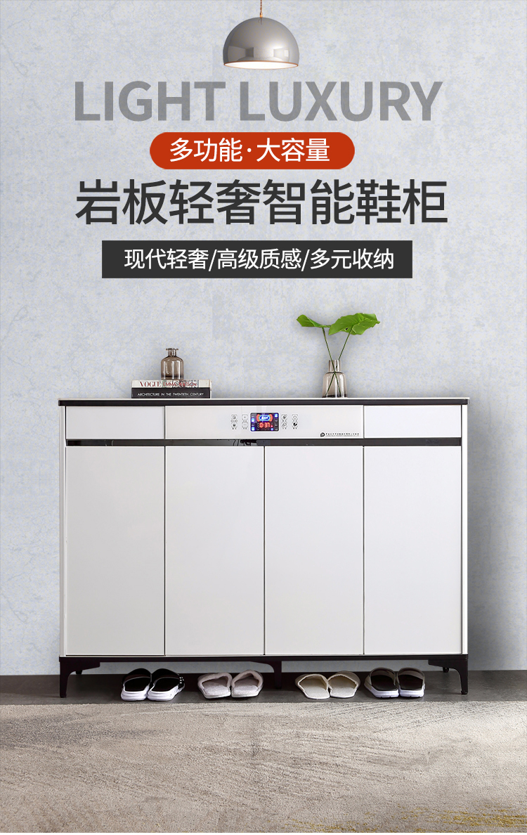 岩板轻奢智能鞋柜,白色液晶全屏颜值控