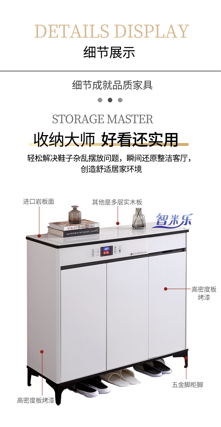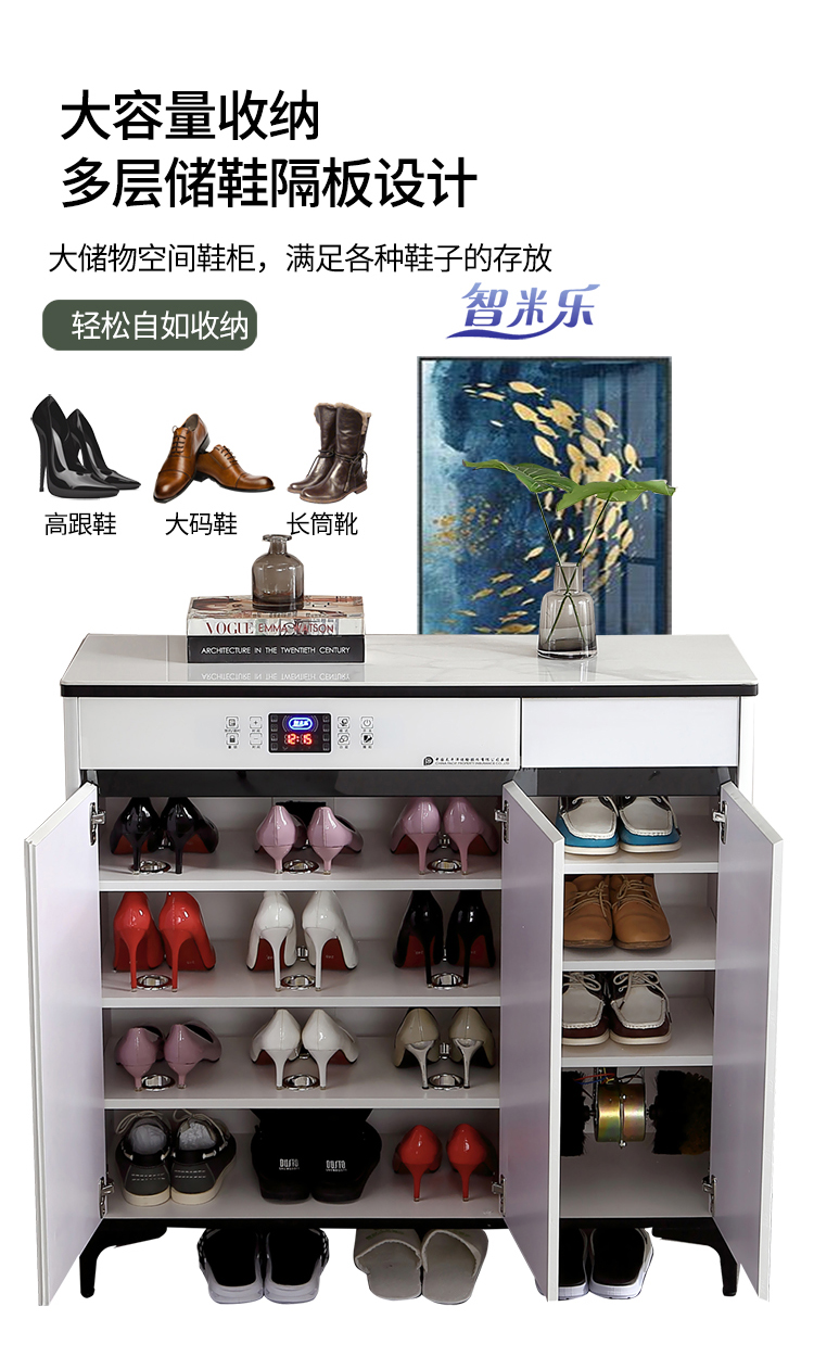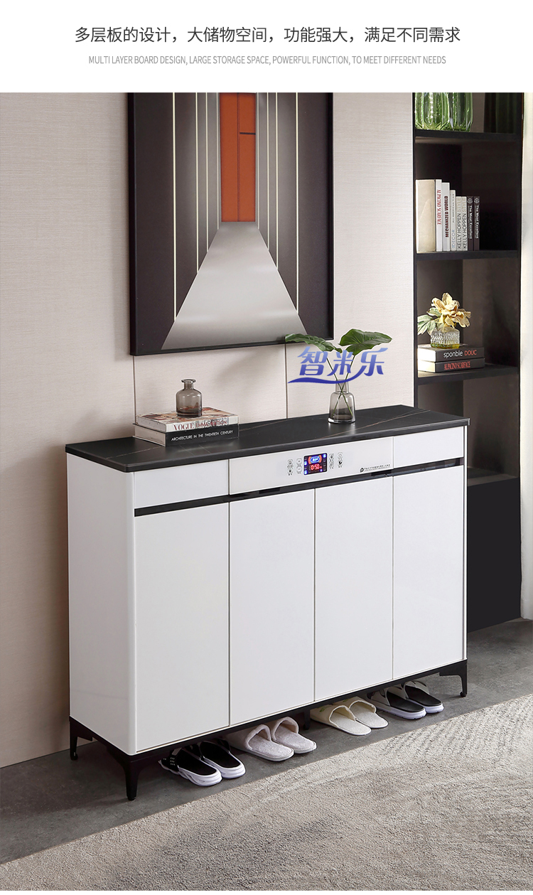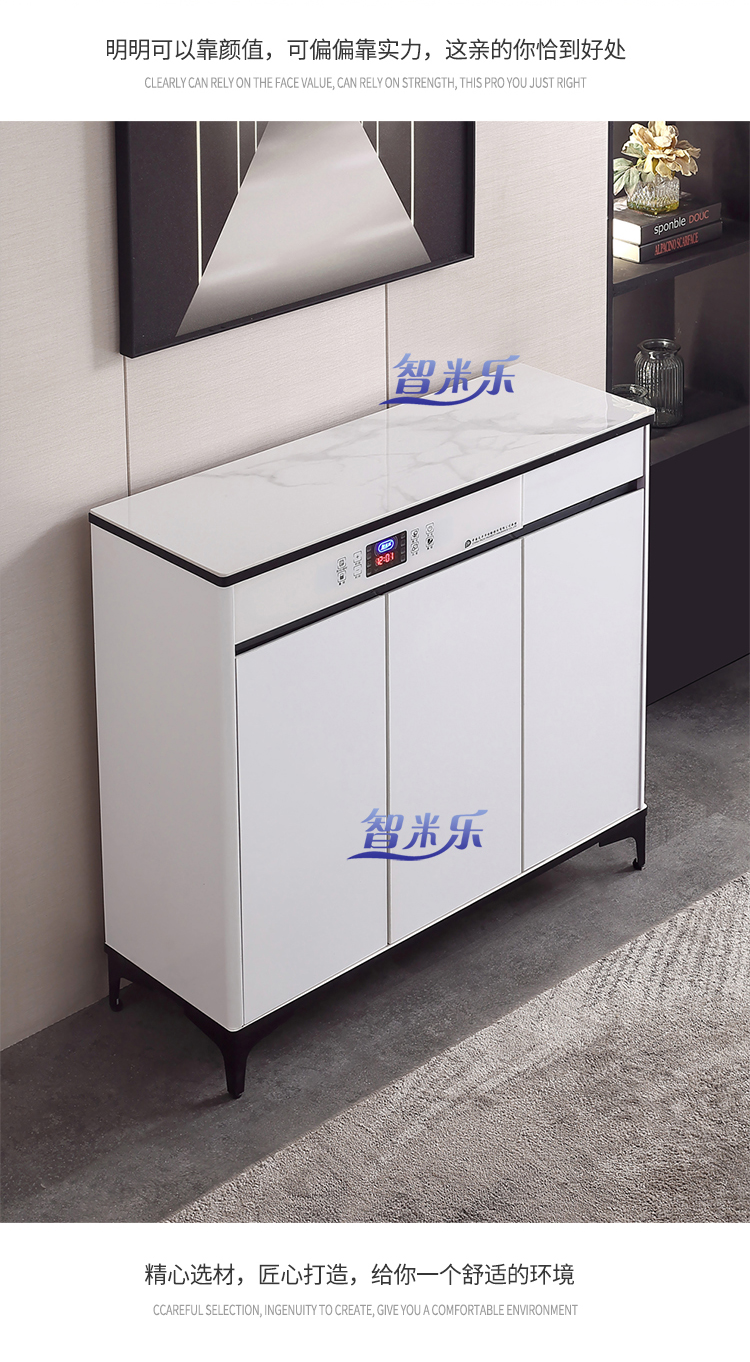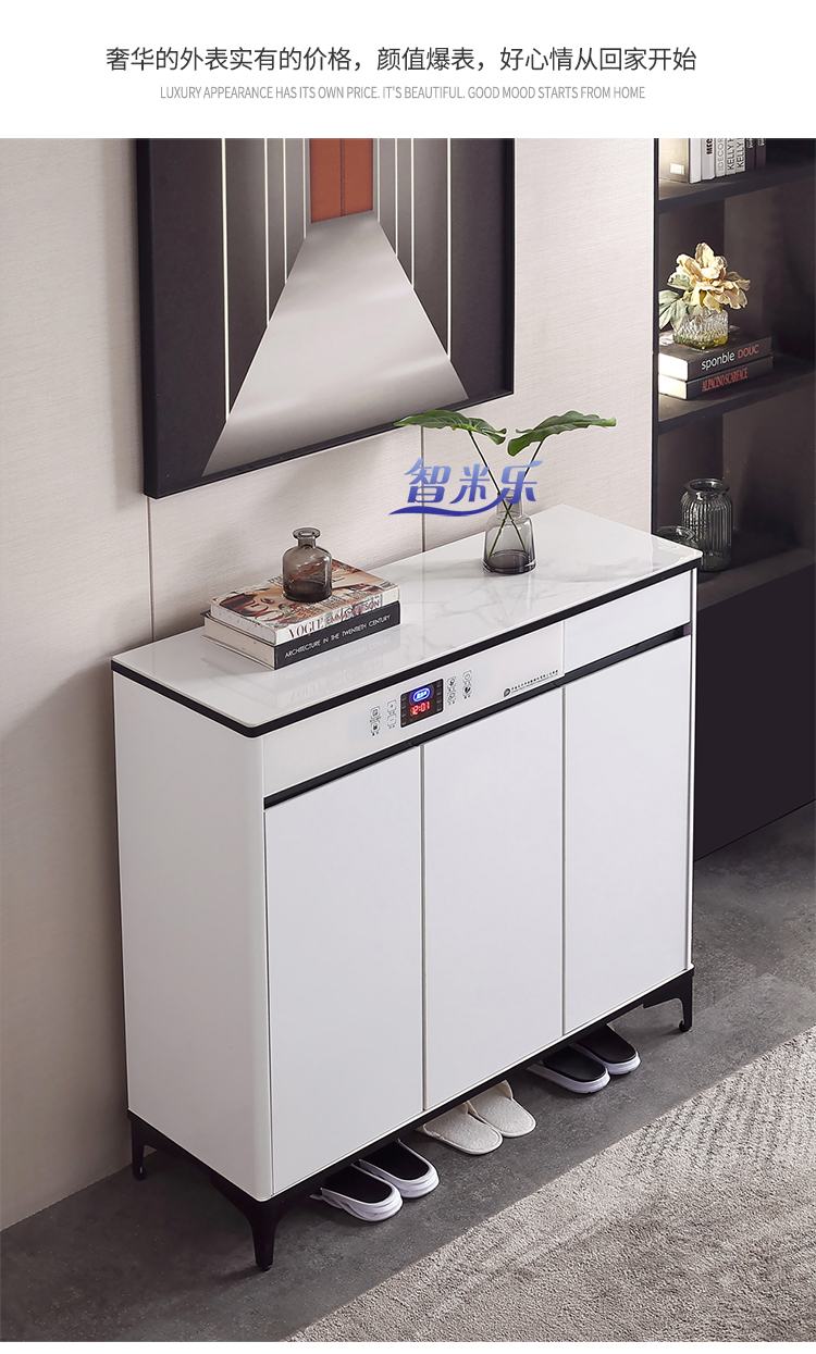 岩板轻奢智能鞋柜,白色液晶全屏颜值控