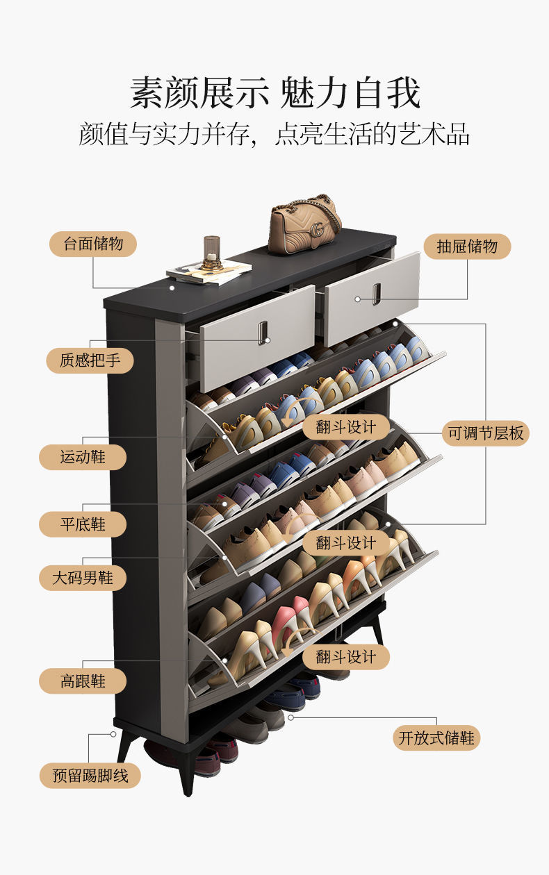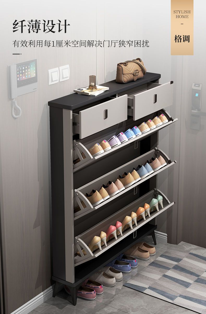 Tủ giày thùng lật siêu mỏng cửa nhà đơn giản hiện đại tủ hiên căn hộ nhỏ lối vào giá giày hẹp có ngăn kéo
