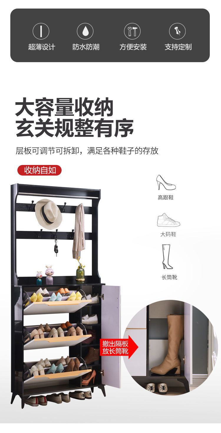 Tủ giày thùng lật siêu mỏng màu trắng tủ cửa lắp ráp đơn giản tủ giày đa năng tủ đại sảnh đơn giản hiện đại tiết kiệm