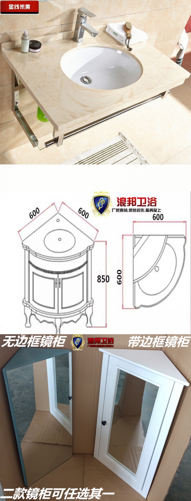 Tủ góc phòng tắm tùy chỉnh bàn trang điểm hình cánh quạt chậu rửa tam giác chậu rửa góc tủ kết hợp tủ gương phòng tắm