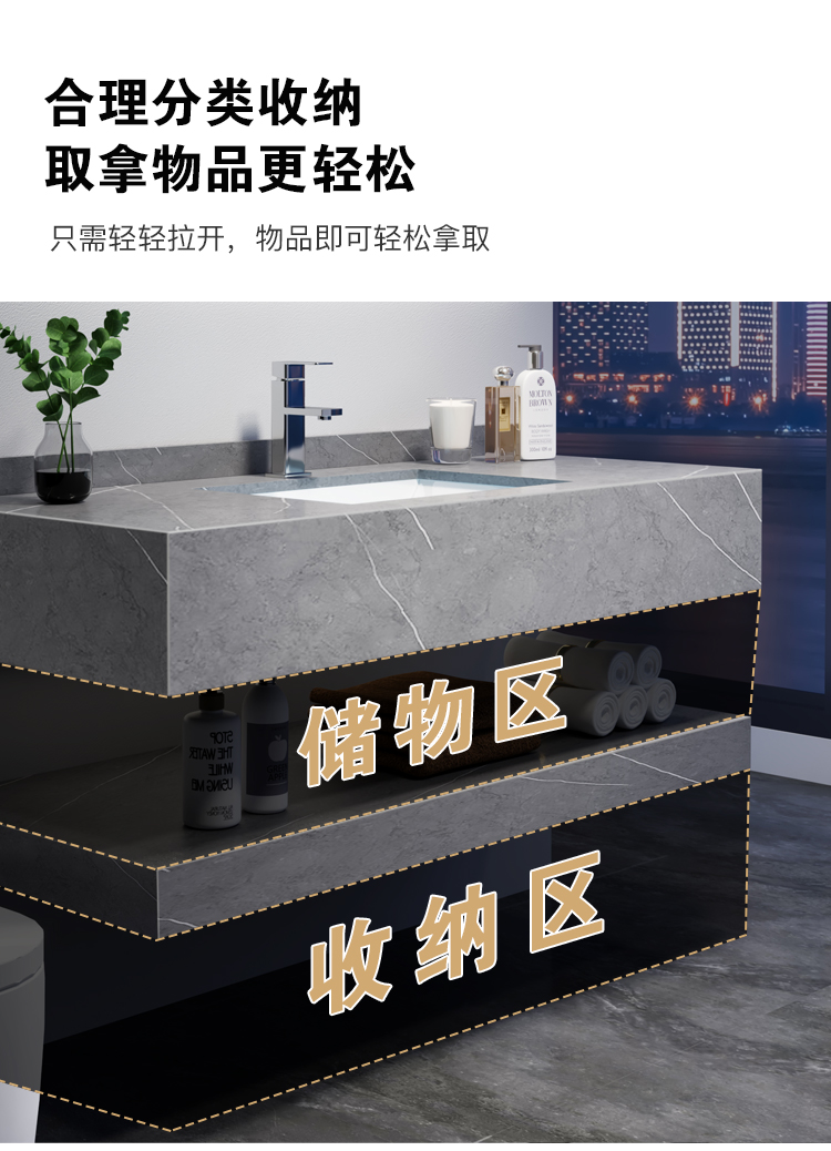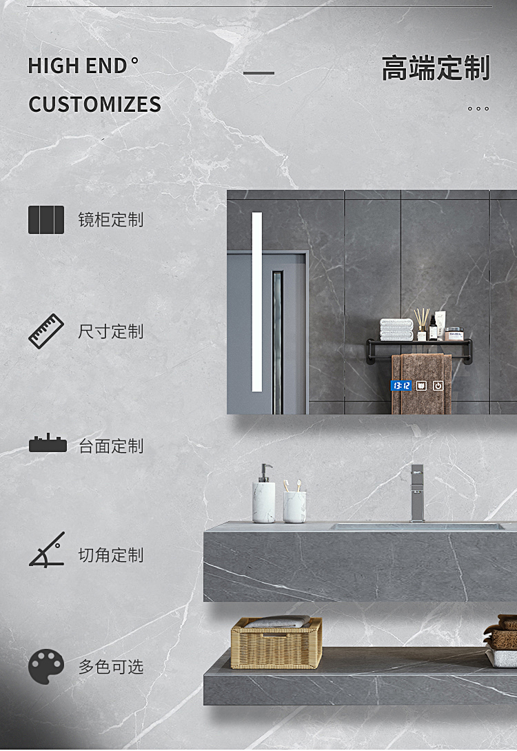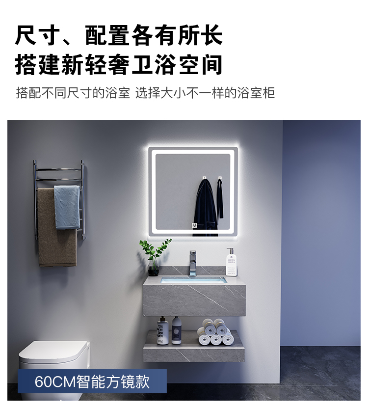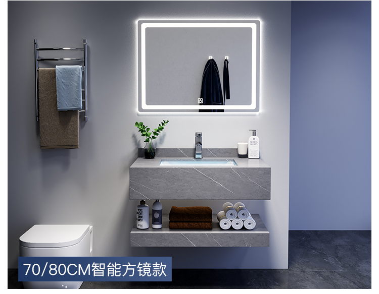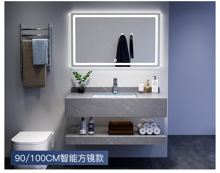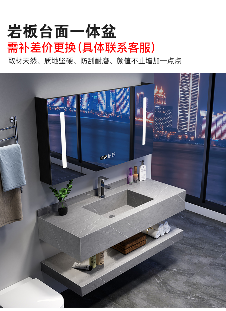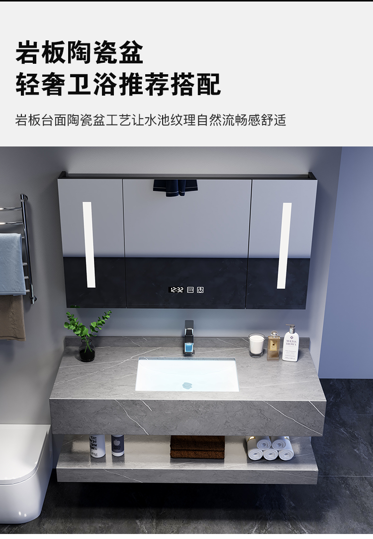 Tủ gương thông minh tủ phòng tắm kết hợp đá phiến chậu rửa tay chậu rửa mặt hồ bơi ánh sáng sang trọng hiện đại tối giản phòng tắm