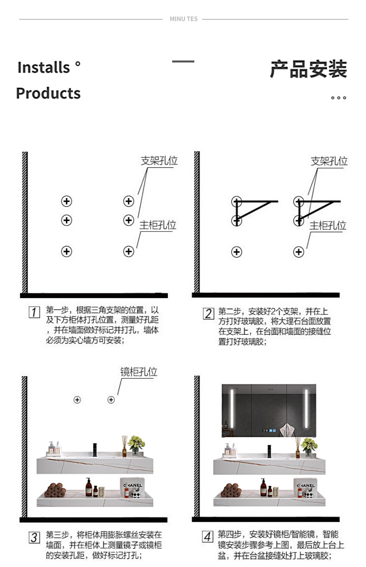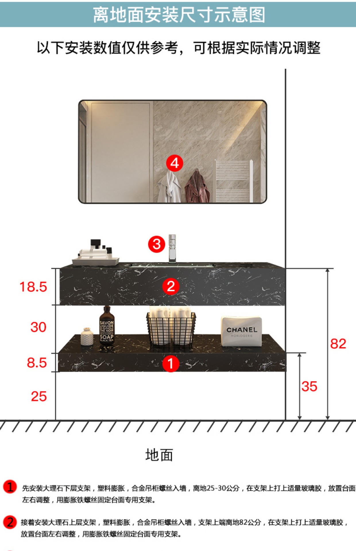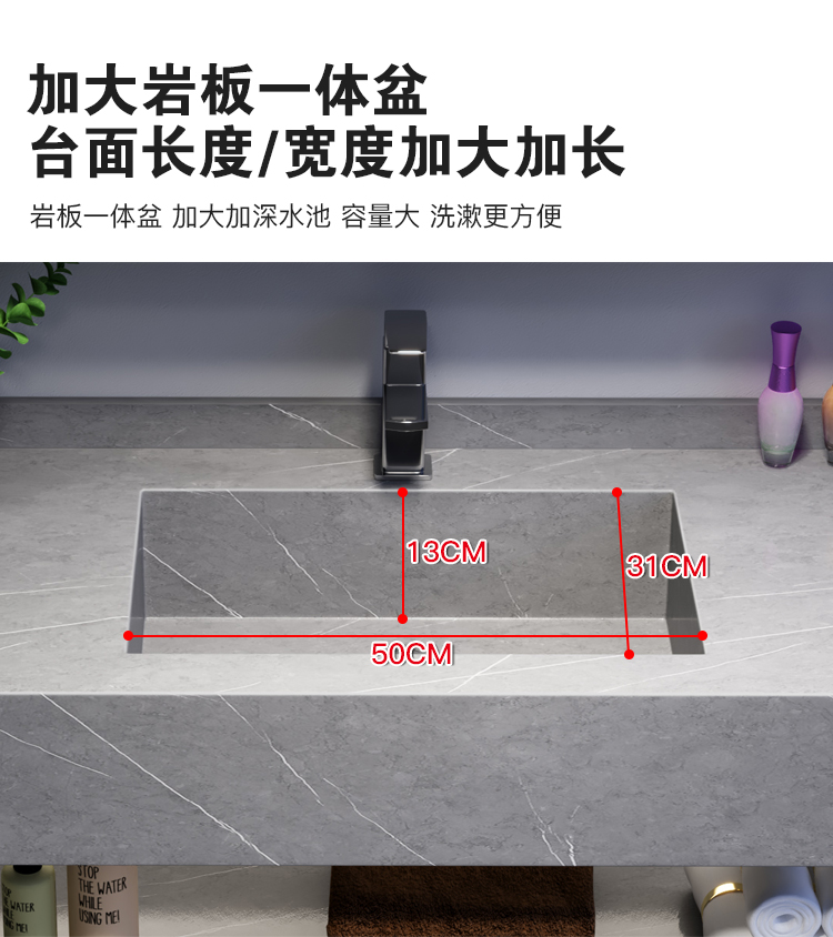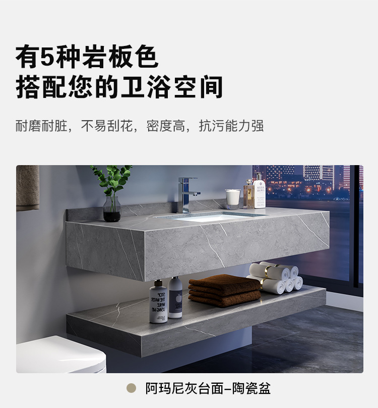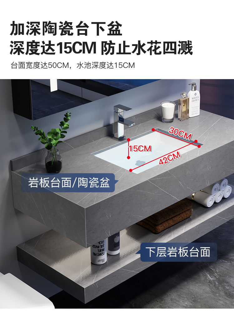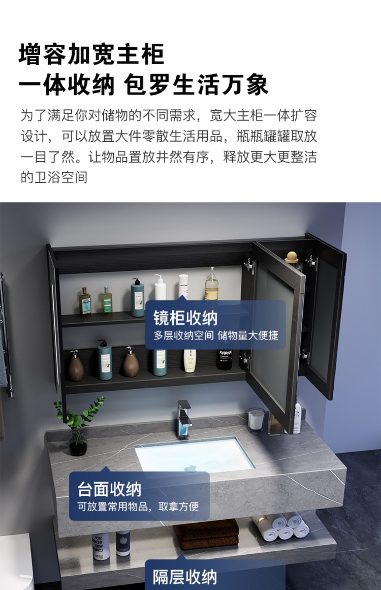 Tủ gương thông minh tủ phòng tắm kết hợp đá phiến chậu rửa tay chậu rửa mặt hồ bơi ánh sáng sang trọng hiện đại tối giản phòng tắm