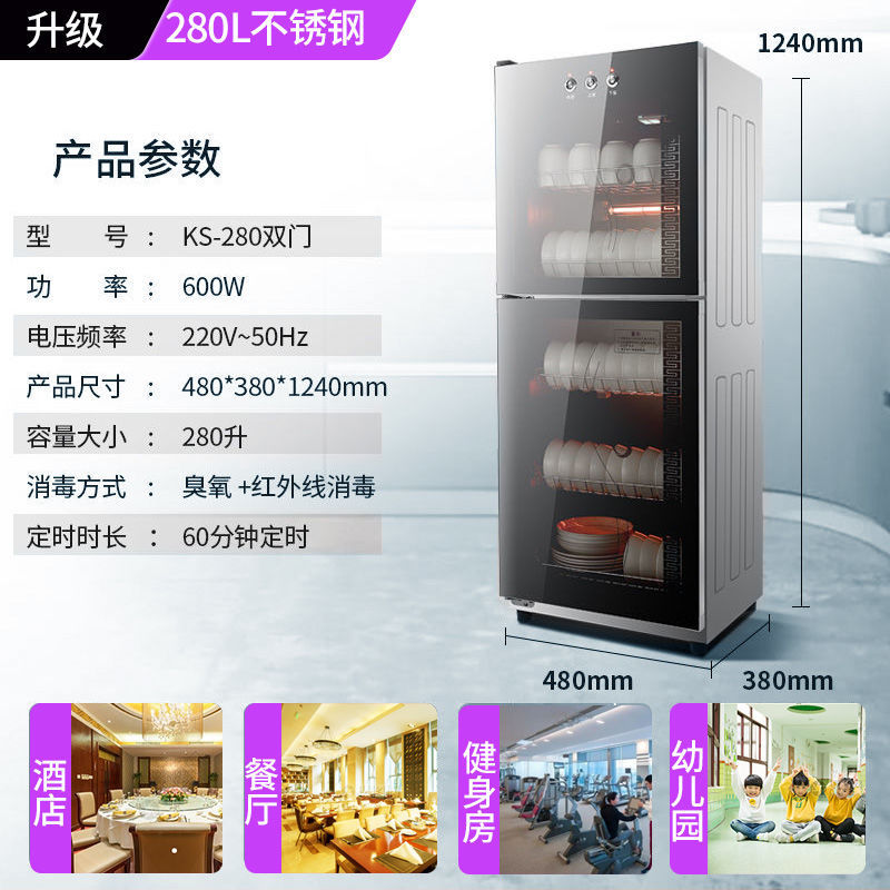Tủ khử trùng bát đĩa gia dụng thương mại dọc bộ đồ ăn máy sấy cửa đôi công suất lớn tủ khử trùng đa chức năng bán buôn là thiết bị nằm trong danh mục Đồ nhà hàng > Tủ sấy thực phẩm, được thiết kế chuyên dụng cho các nhà hàng cần sự tiện nghi và chuyên nghiệp.