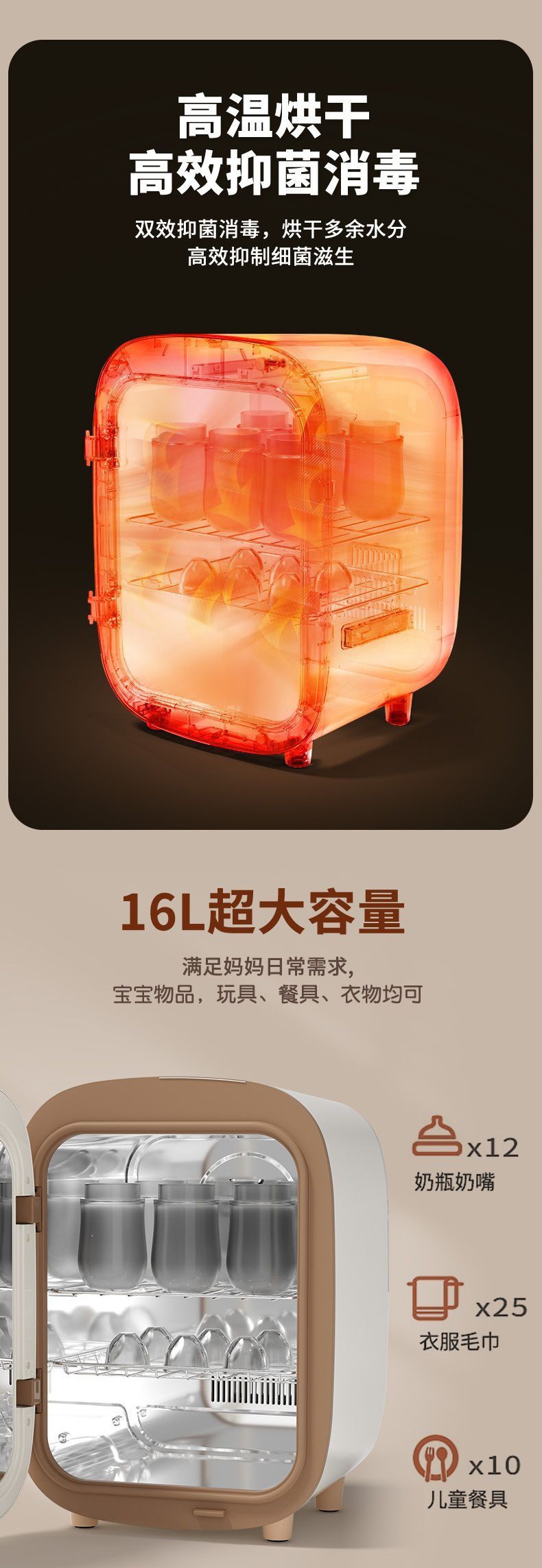 Tủ khử trùng bình sữa cho bé Tủ khử trùng cho bé nhỏ sấy nhiệt độ cao 16L không có cốc khử trùng bằng tia cực tím Máy sấy quần áo