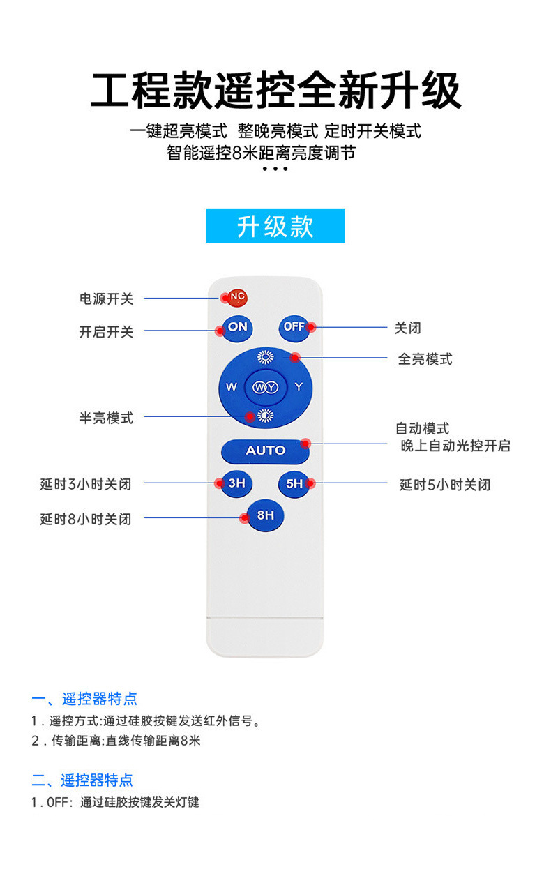 注意事项:样品开发费为500元,打样时间7-10天,大货数量为每款50个起,默认配置为3色变光遥控款