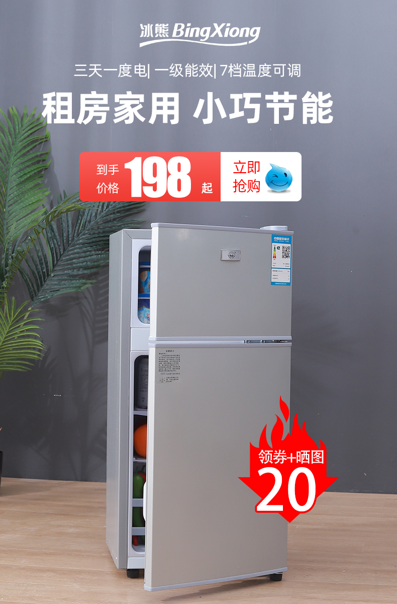 Tủ lạnh nhỏ hộ gia đình ký túc xá nhỏ cho thuê phòng đông lạnh tủ lạnh mini cửa đôi tủ lạnh tiết kiệm năng lượng hạng nhất và tiết kiệm điện