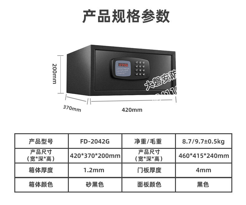 Mã sản phẩm: 2042G Thương hiệu: DAPAN/Dapan Sử dụng: Khách sạn/Nhà khách Model: FD-2042G Thông số kỹ thuật: 2042 Đặc điểm chức năng: Chống trộm Nền hạ lưu chính: Khác Trọng lượng: 8,7kg Chức năng báo động: Có Chất liệu: Tấm cán nguội Kích thước: 420*370 *200mm Có dành riêng cho xuất khẩu xuyên biên giới Nguồn cung cấp: Có Khu vực bán hàng chính: Châu Phi/Châu Âu/Nam Mỹ/Đông Nam Á/Bắc Mỹ/Trung Đông/Trung Đông Loại: két mật khẩu điện tử