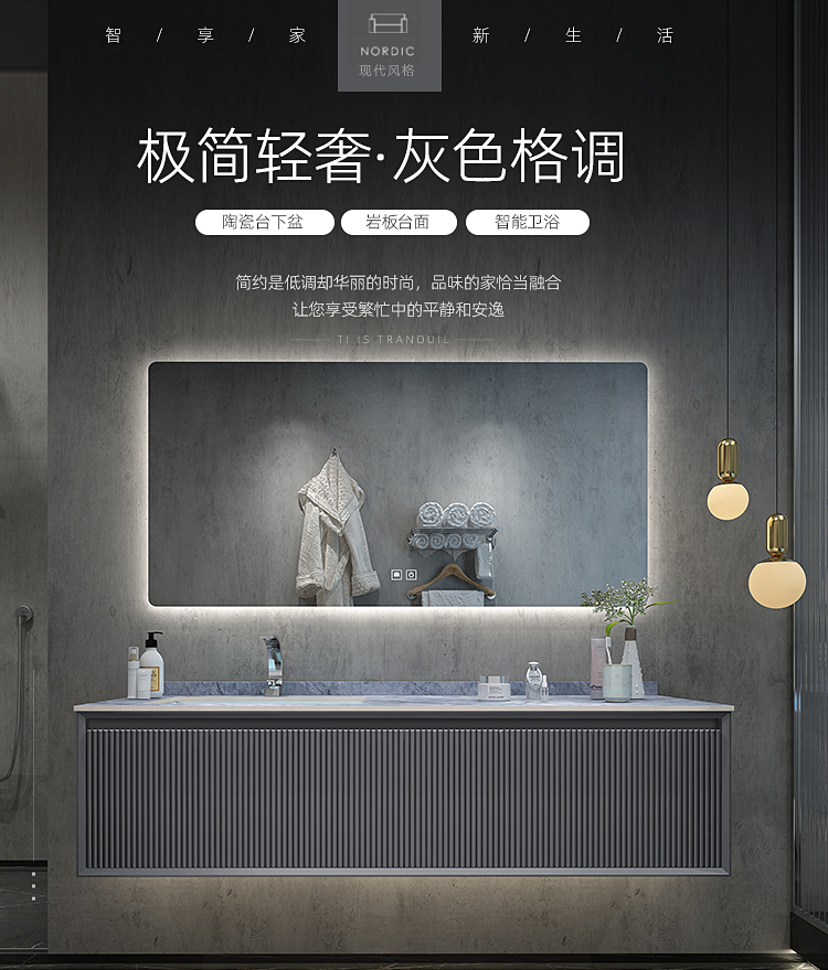 Tủ phòng tắm bằng đá phiến sang trọng nhẹ kết hợp hiện đại tối giản gương thông minh phòng tắm chậu rửa chậu rửa mặt gỗ chắc chắn