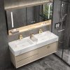 Tủ phòng tắm hiện đại kết hợp phòng tắm bồn rửa đôi bằng đá cẩm thạch