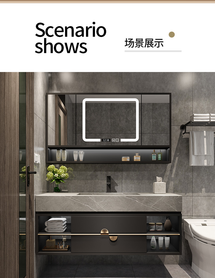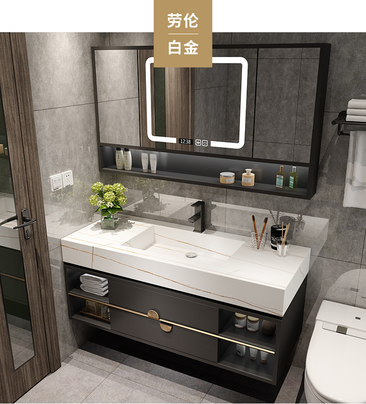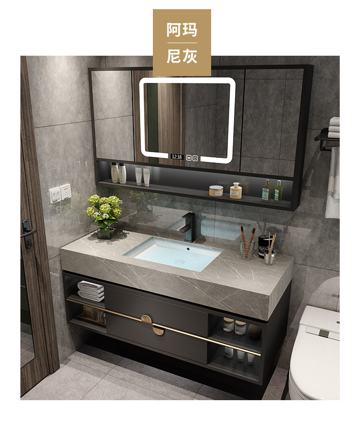 Tủ phòng tắm Jiumu kết hợp đá phiến một đơn giản hiện đại nhà vệ sinh thông minh chậu rửa chậu rửa hồ bơi chậu rửa