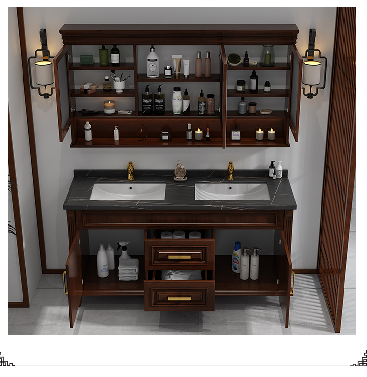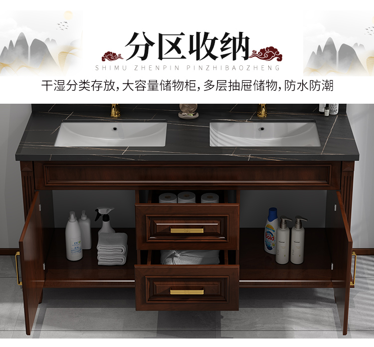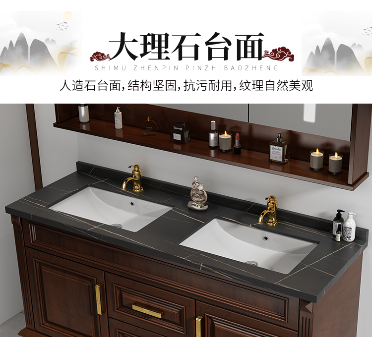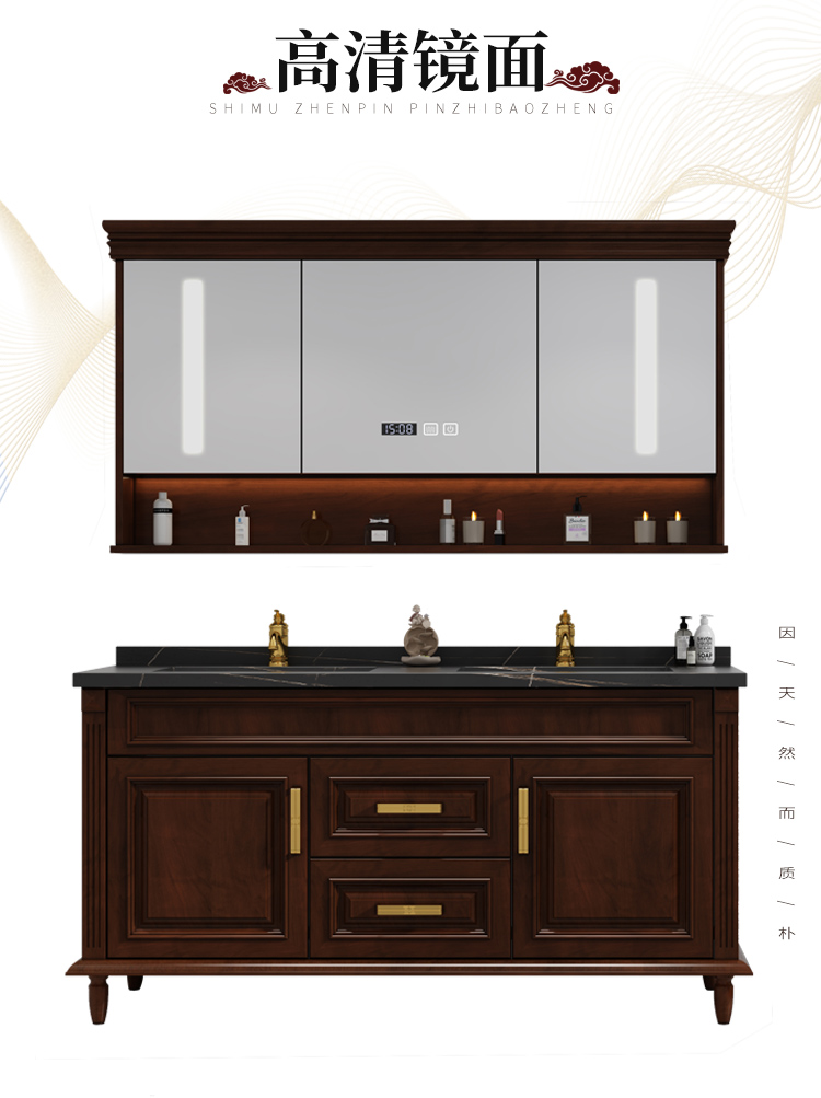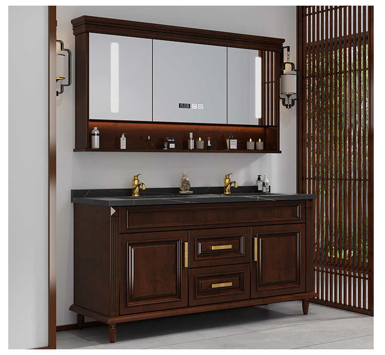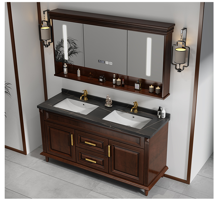 Tủ phòng tắm kiểu Mỹ gỗ cứng từ sàn đến trần nhà vệ sinh bằng gỗ sồi bồn rửa tay hồ bơi bồn tắm đôi thông minh kết hợp tủ phòng tắm